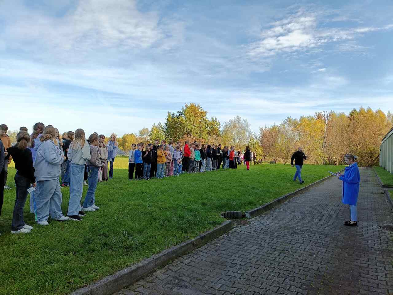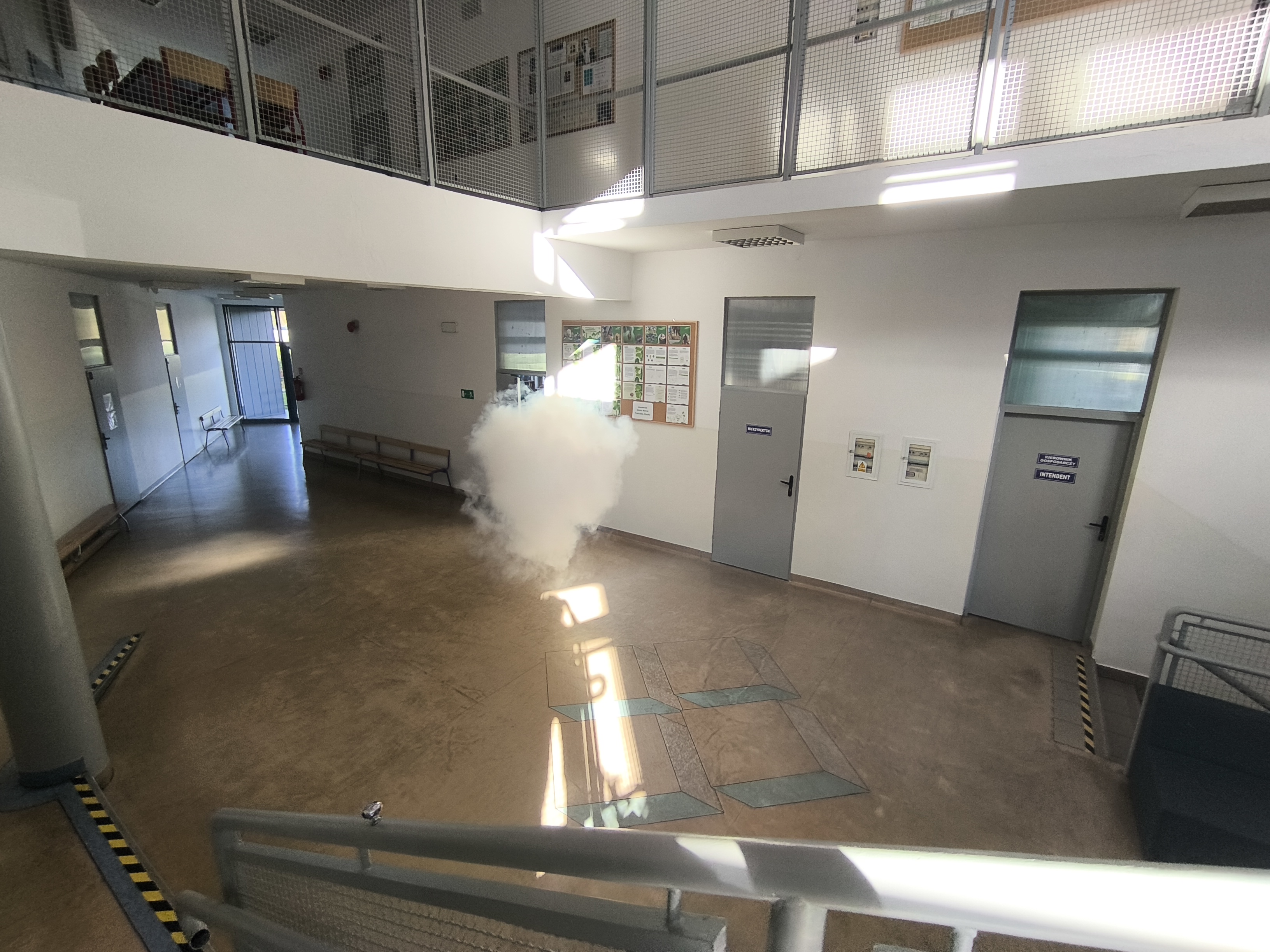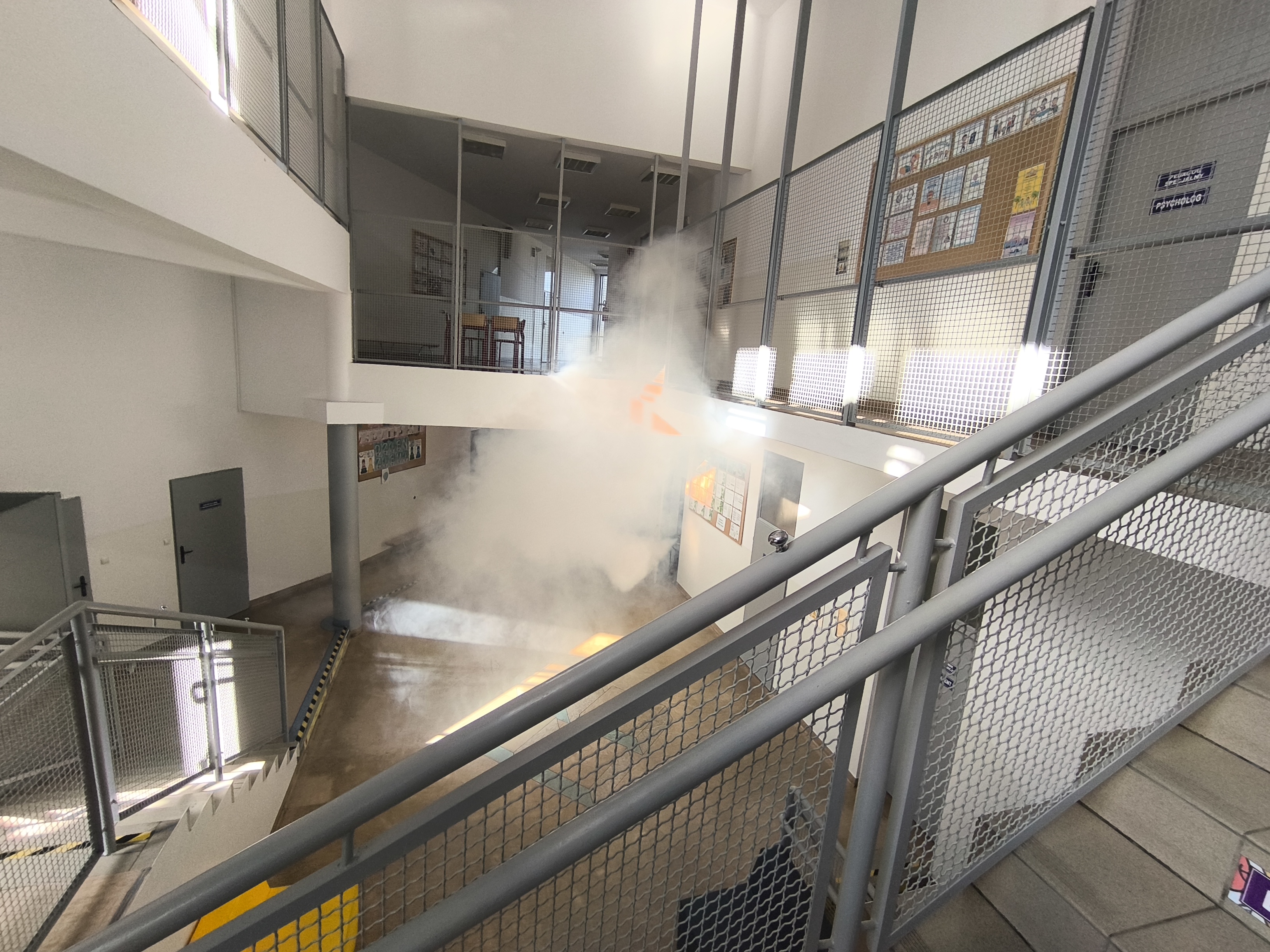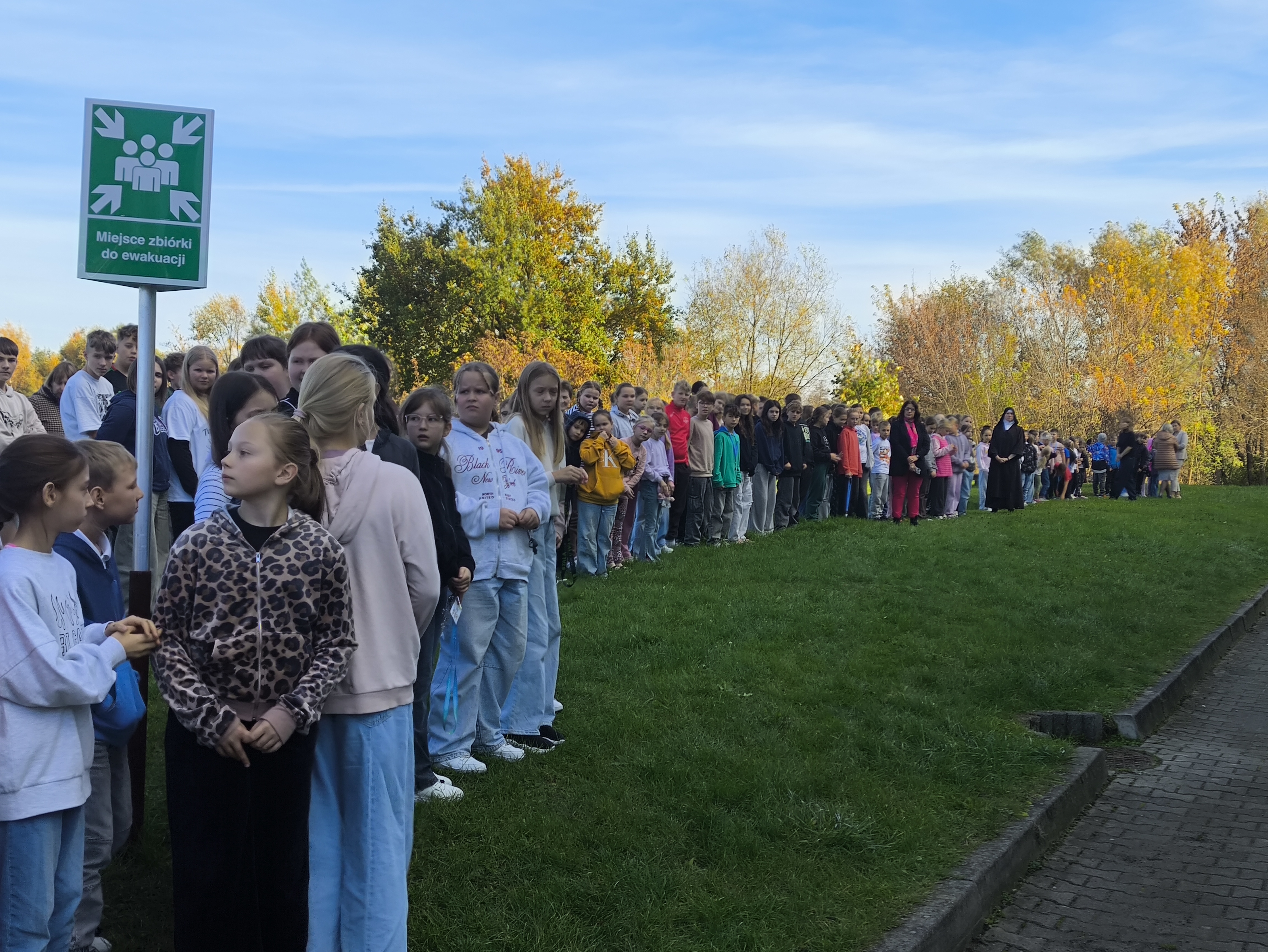 23 października 2025 roku w naszej szkole odbyła się próbna ewakuacja. W środku czwartej lekcji rozległy się trzy krótkie dzwonki – był to sygnał do rozpoczęcia działań ewakuacyjnych. Uczniowie pod opieką nauczycieli natychmiast, ale spokojnie opuścili sale lekcyjne. Na szkolnym korytarzu można było zauważyć dym i poczuć zapach spalenizny – symulacja miała na celu sprawdzenie naszej reakcji w sytuacji zagrożenia pożarem.