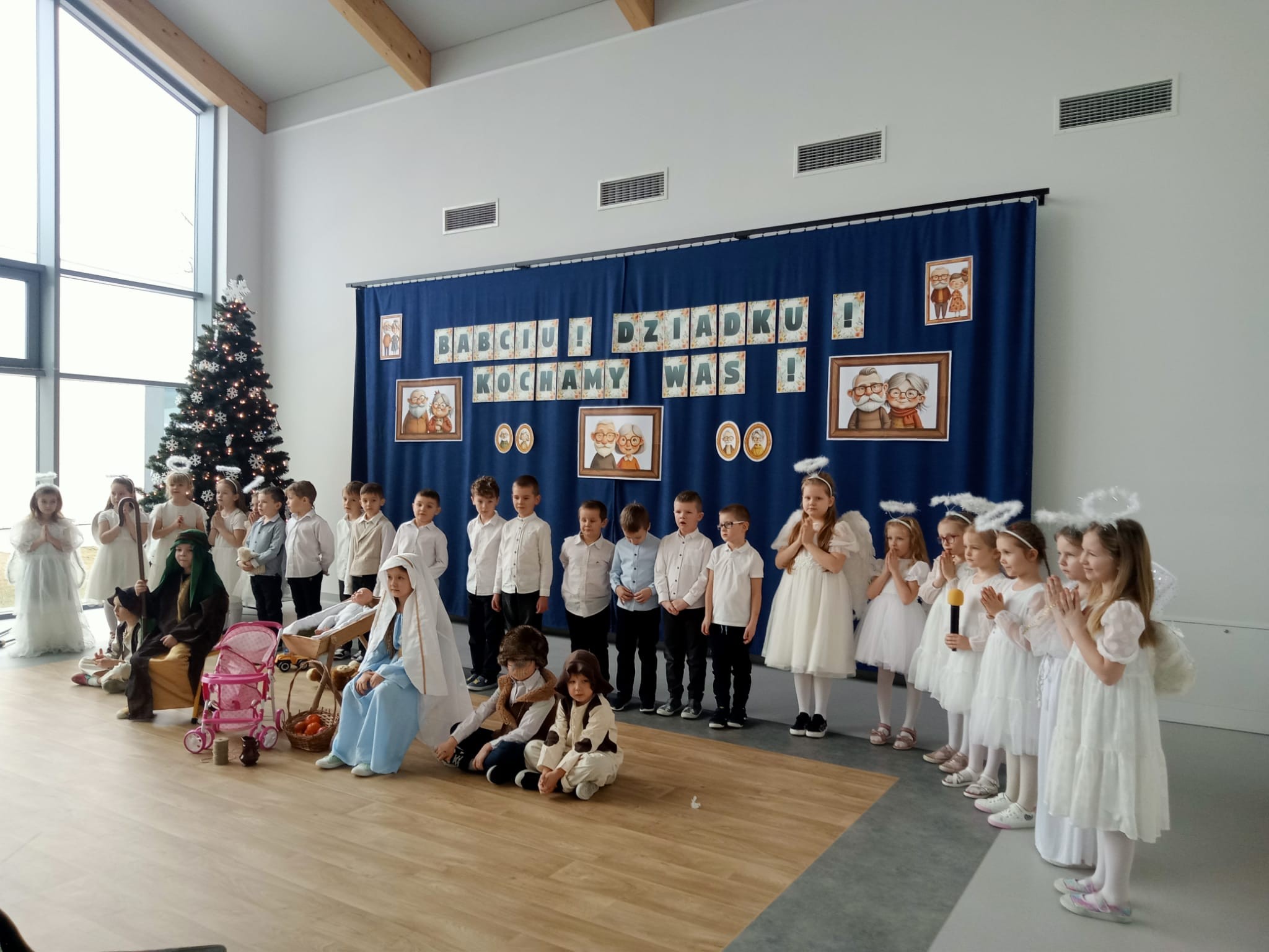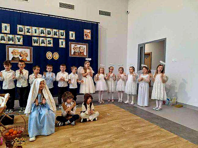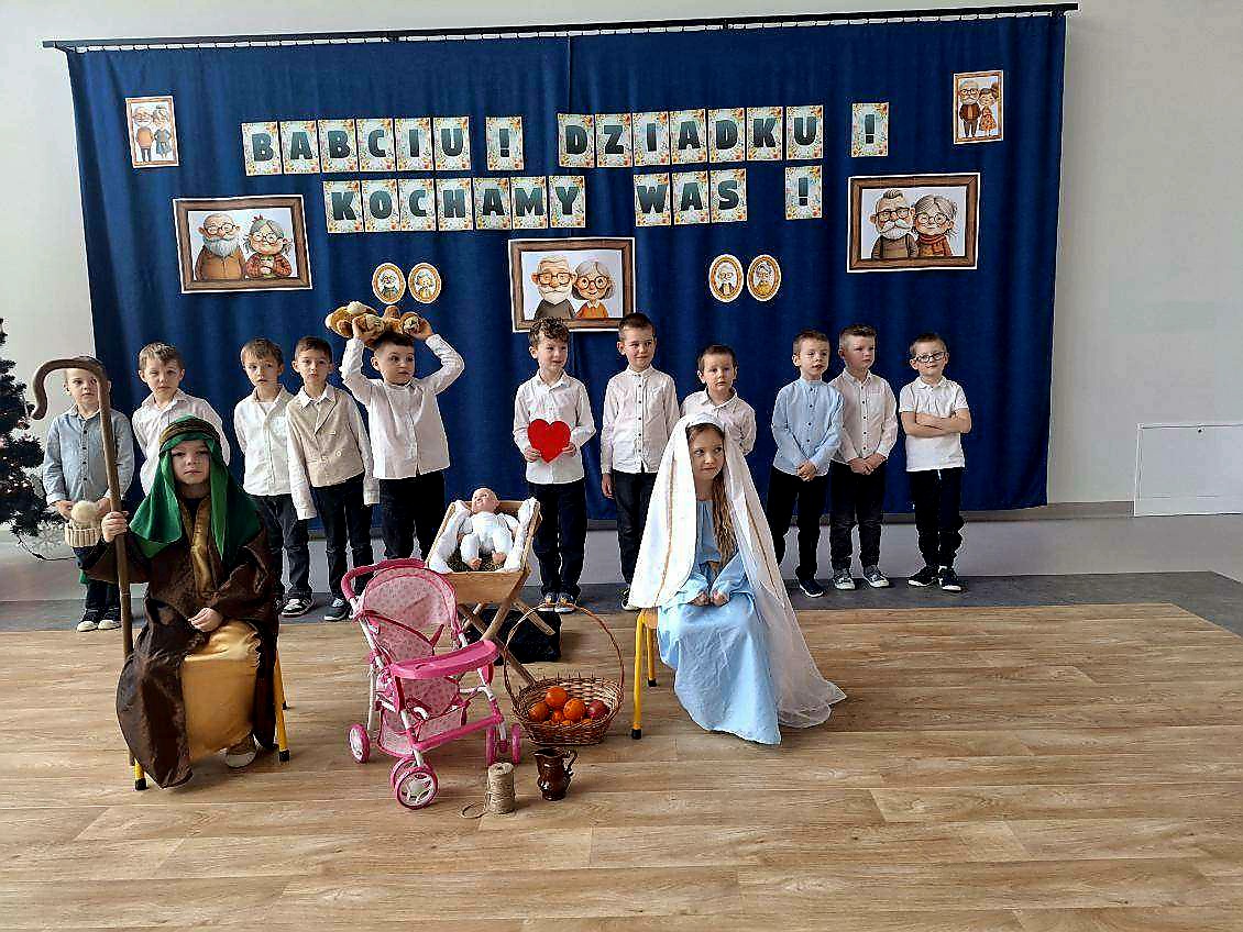 Natomiast dzieci z najstarszych grup, z grupy Biedronek i Motylków przedstawiły swoim ukochanym Babciom i Dziadkom piękne Jasełka. Mali artyści z ogromnym zaangażowaniem wcielili się w role Maryi, Józefa, aniołów, pastuszków i królów. Na scenie nie zabrakło kolęd oraz ciepłych życzeń płynących prosto z serca.