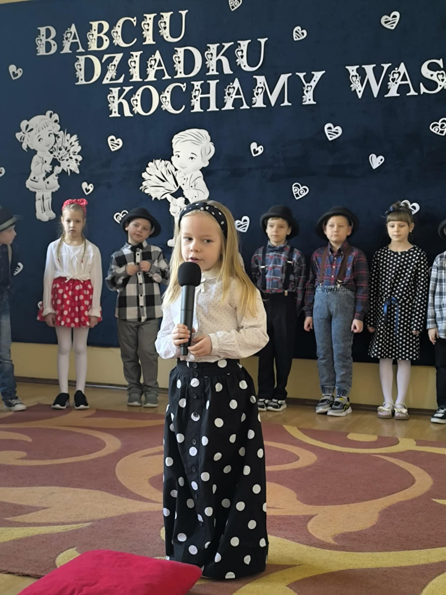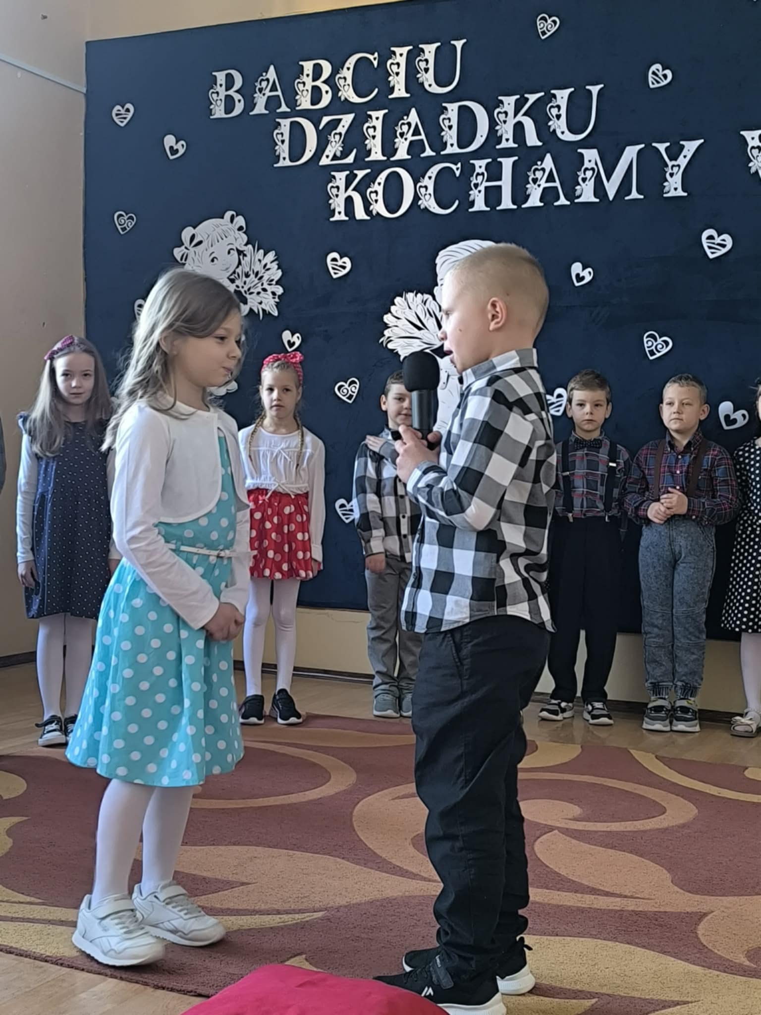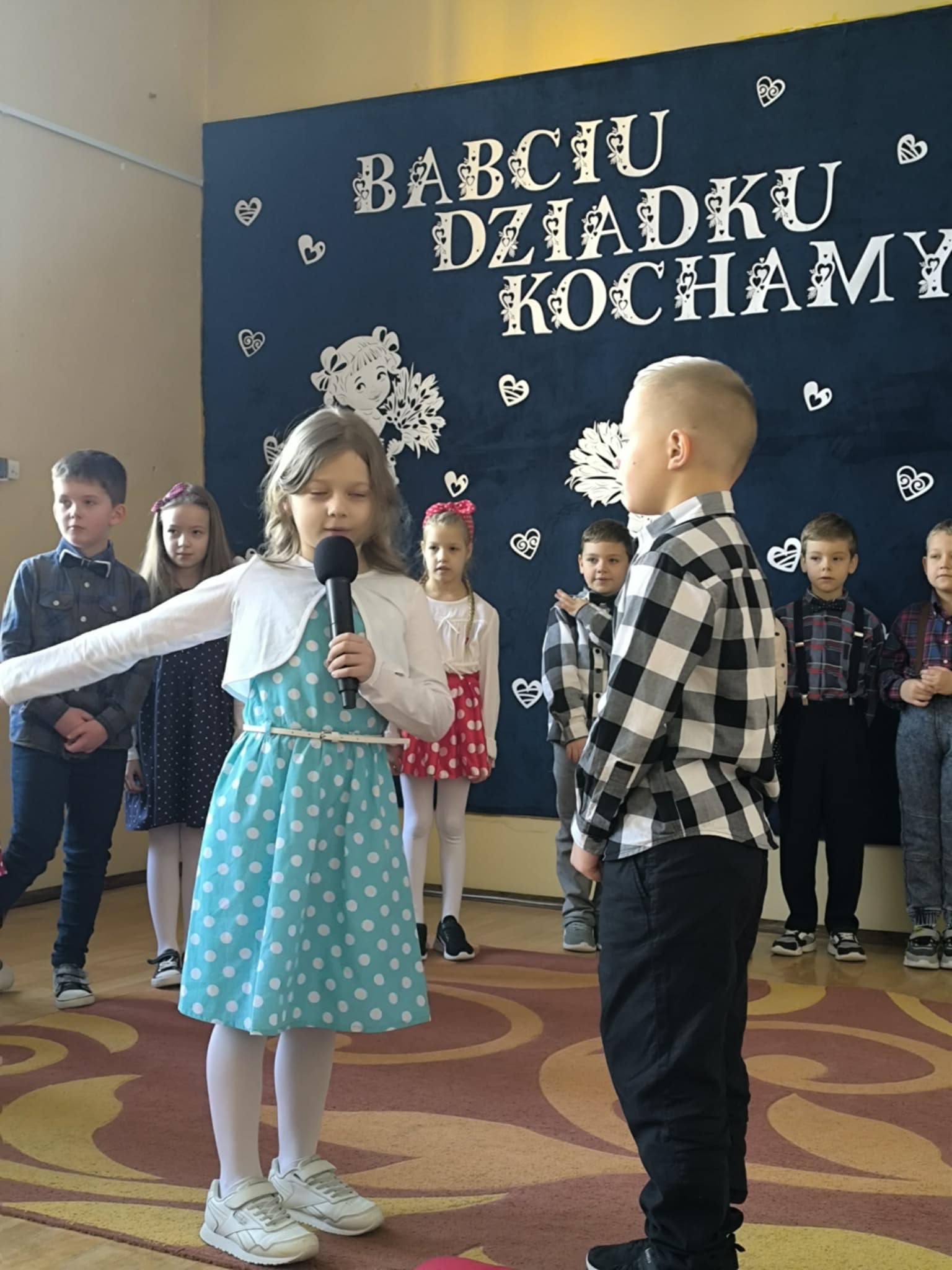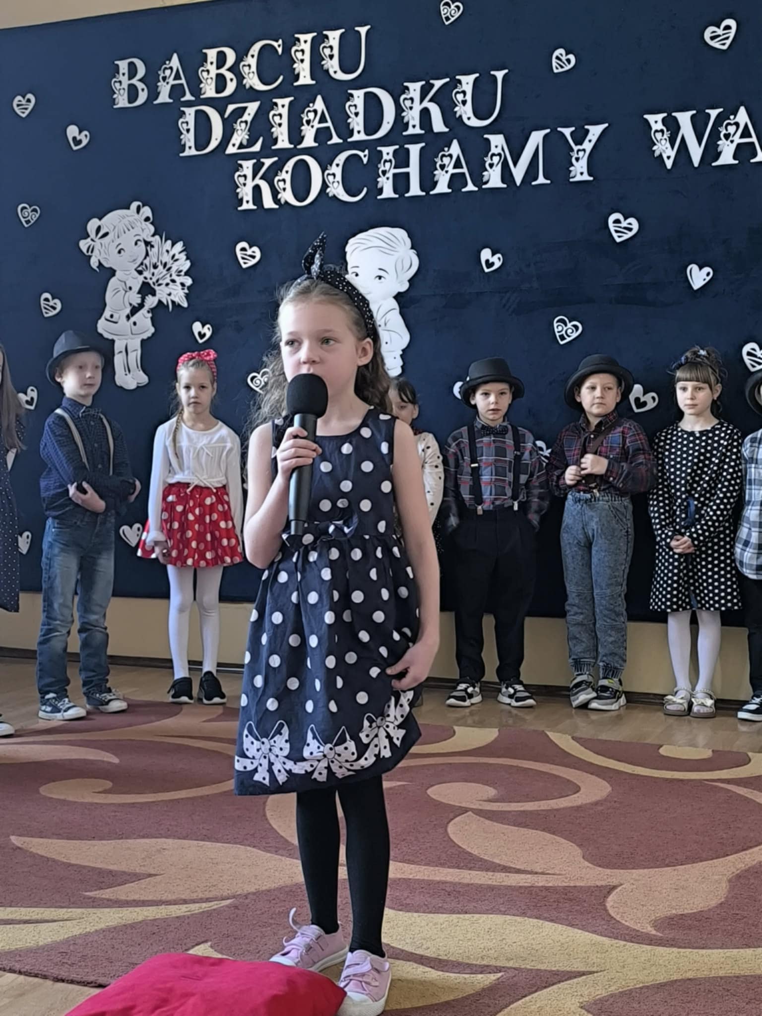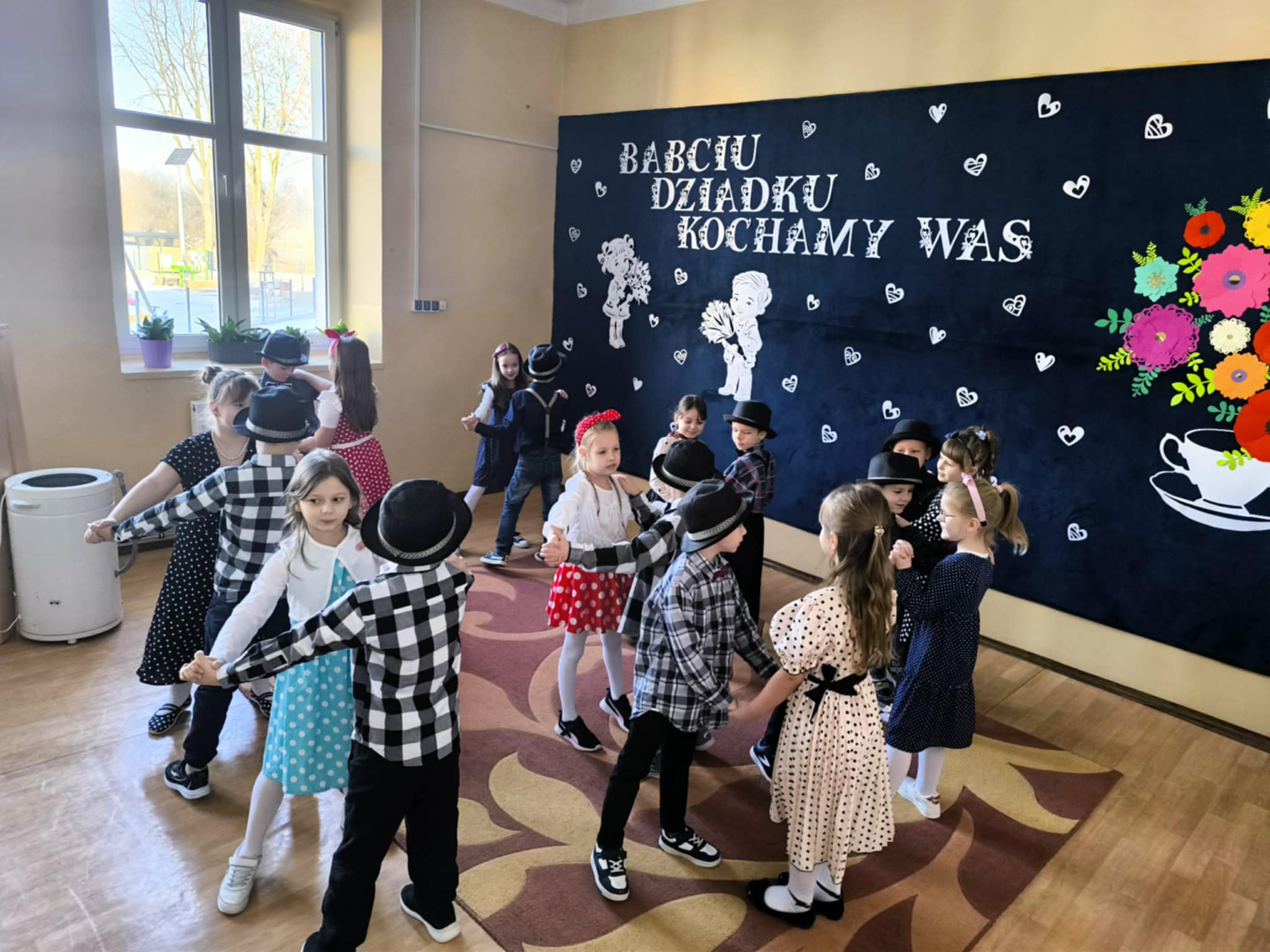 21 stycznia 2026 r. uczniowie klasy 1 zaprezentowali inscenizację pt: ,,Babcia i Dziadek – prawdziwa historia", podczas której przenieśli swoich najbliższych w czasy PRL-u. Historia miała miejsce w kolejce przed sklepem, to tam właśnie dziadek po raz pierwszy spotkał swoją ukochaną babcię. Inscenizacja przepełniona była dużą dawką humoru i sentymentalnym powrotem do czasów młodości dziadków. Podczas tej wyjątkowej uroczystości, dzieci poza romantyczną historią miłości dziadków, zaprezentowały także swoje liczne talenty: taniec, grę aktorską oraz śpiew. Następnie przyszła pora na wręczenie upominków oraz słodki poczęstunek przygotowany przez rodziców.