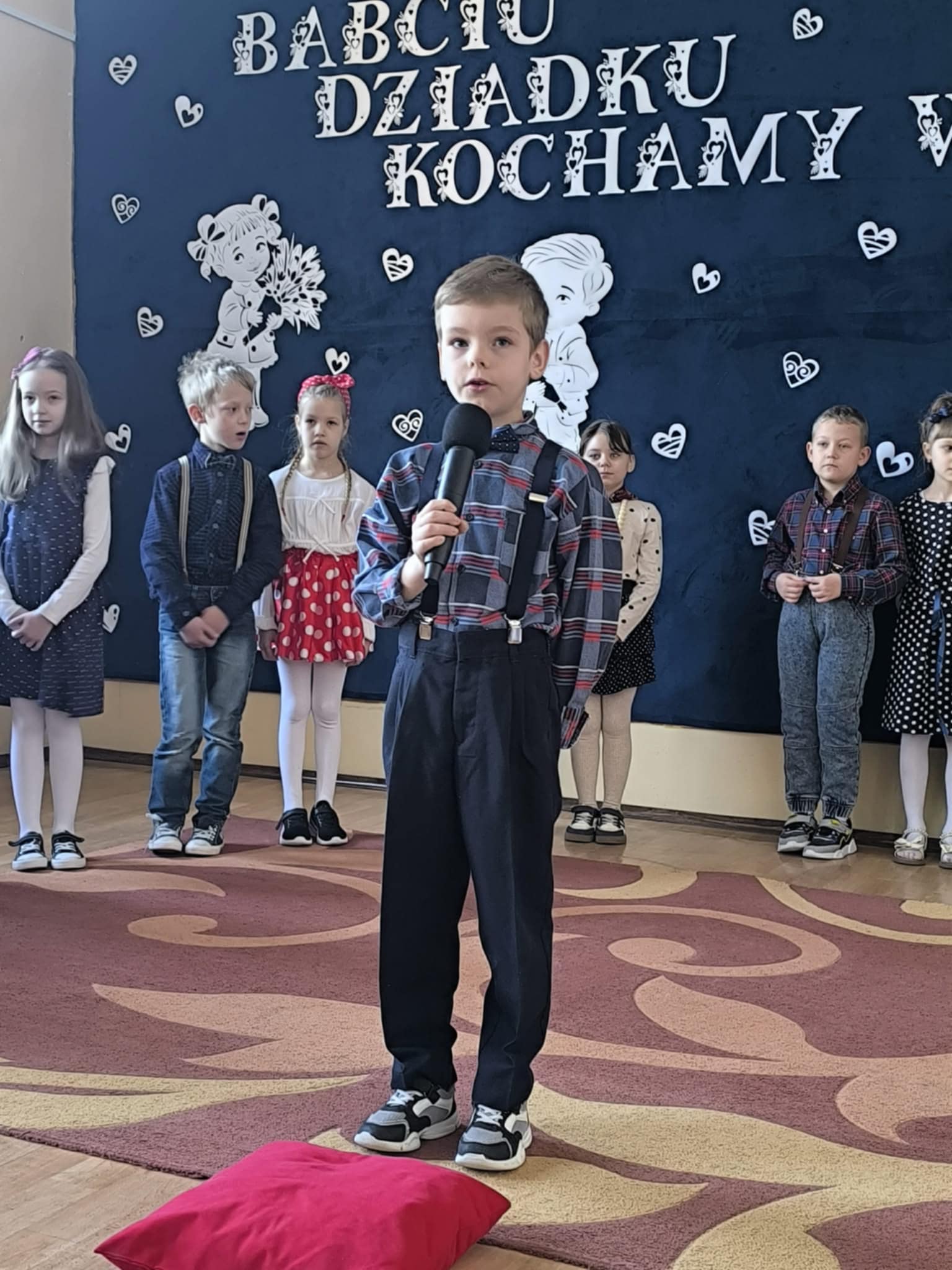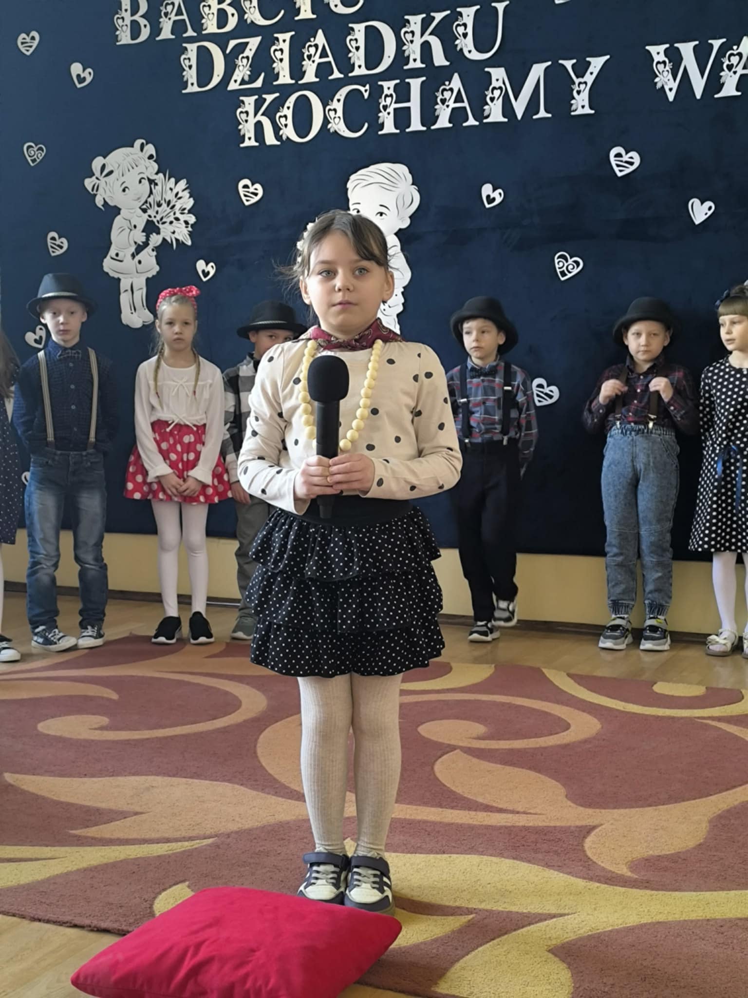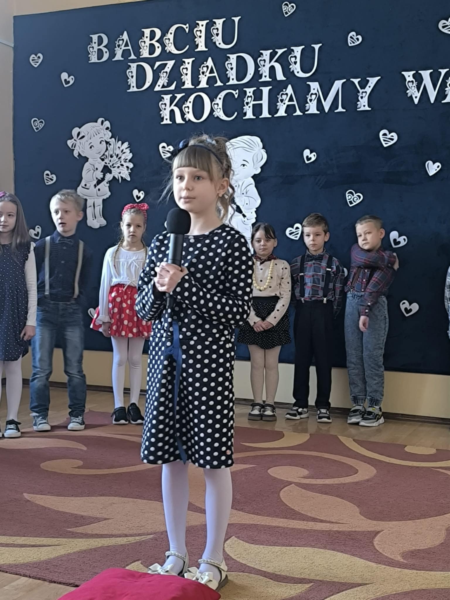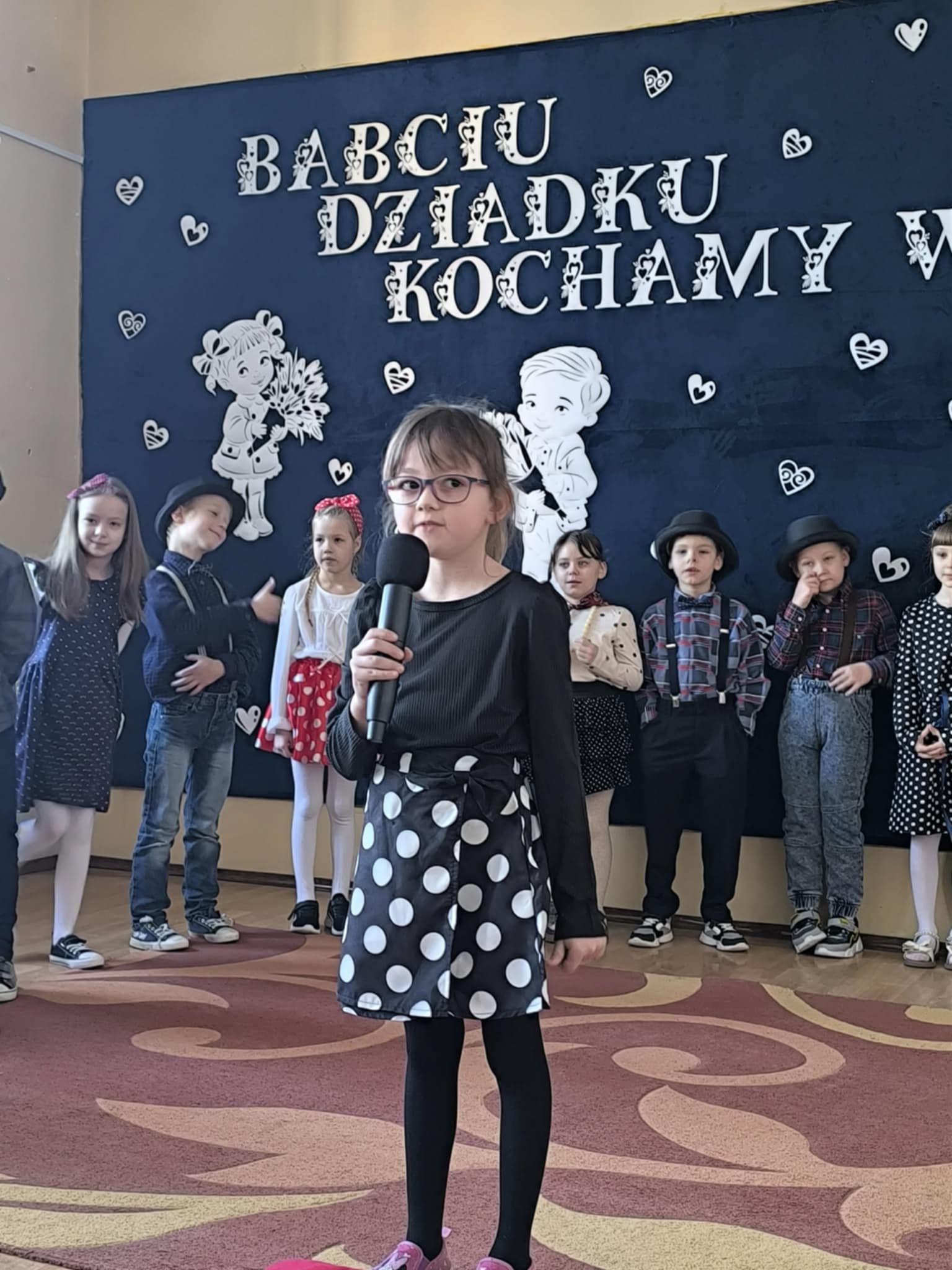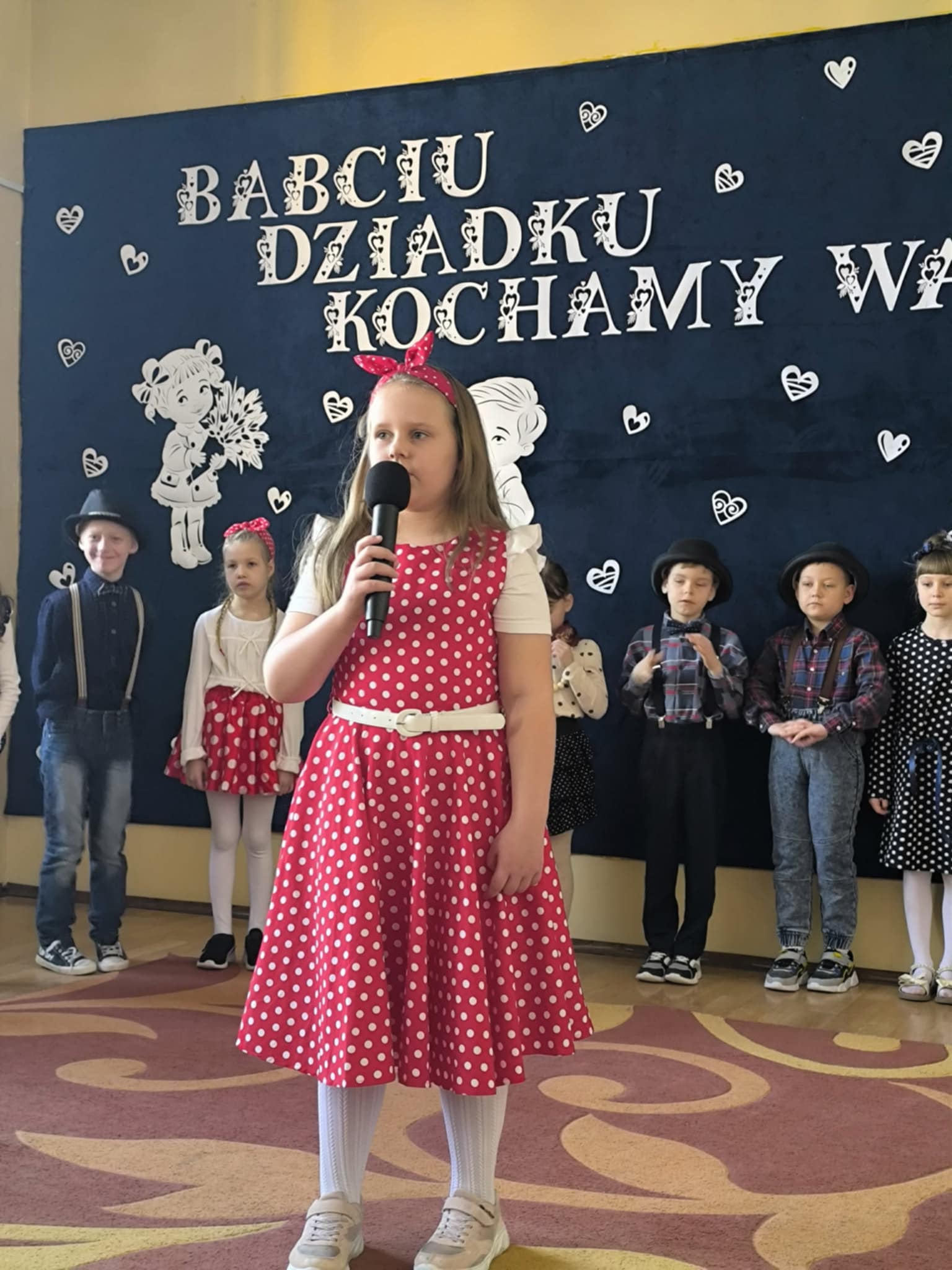 21 stycznia 2026 r. uczniowie klasy 1 zaprezentowali inscenizację pt: ,,Babcia i Dziadek – prawdziwa historia", podczas której przenieśli swoich najbliższych w czasy PRL-u. Historia miała miejsce w kolejce przed sklepem, to tam właśnie dziadek po raz pierwszy spotkał swoją ukochaną babcię. Inscenizacja przepełniona była dużą dawką humoru i sentymentalnym powrotem do czasów młodości dziadków. Podczas tej wyjątkowej uroczystości, dzieci poza romantyczną historią miłości dziadków, zaprezentowały także swoje liczne talenty: taniec, grę aktorską oraz śpiew. Następnie przyszła pora na wręczenie upominków oraz słodki poczęstunek przygotowany przez rodziców.