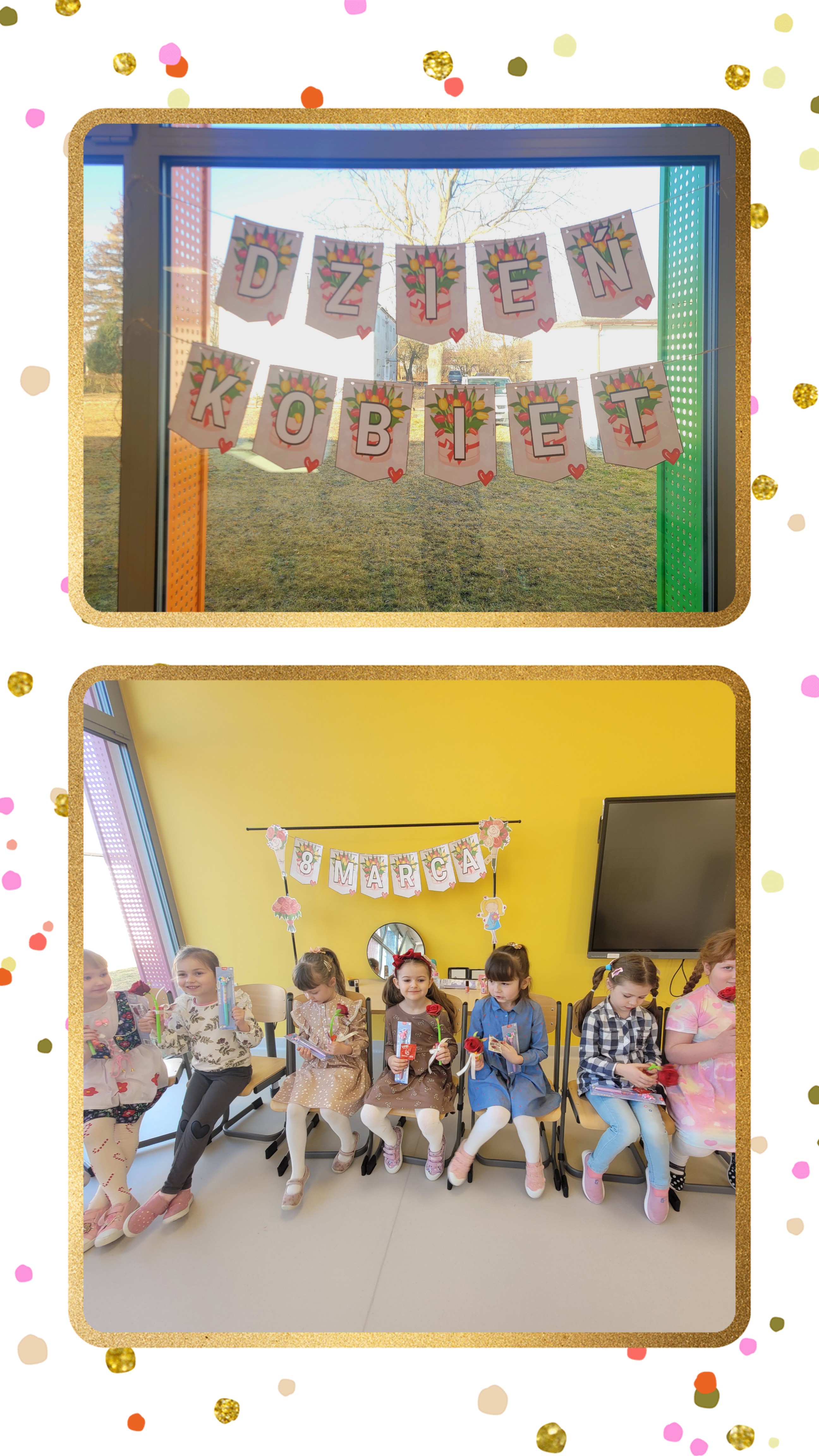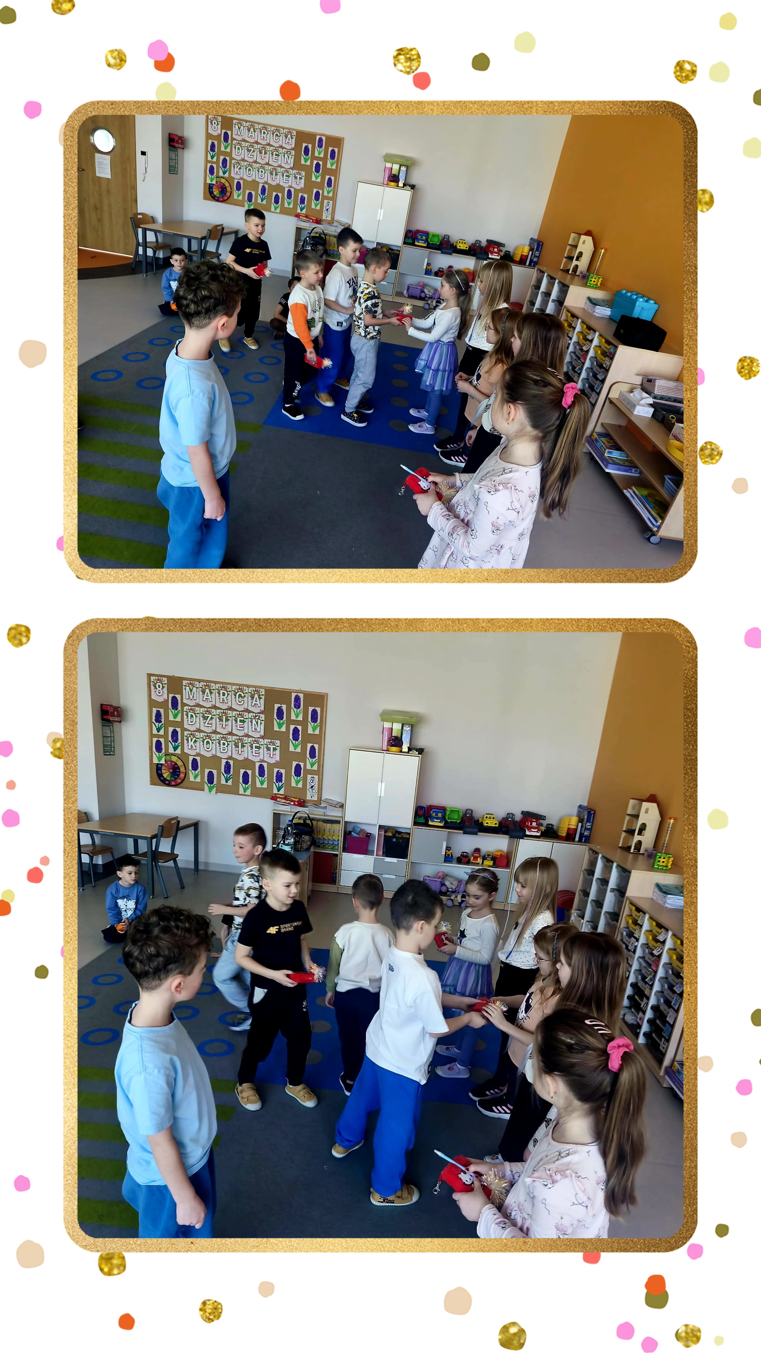 Nie zabrakło także miłych niespodzianek. Chłopcy złożyli koleżankom serdeczne życzenia oraz wręczyli drobne upominki, które sprawiły dziewczynkom wiele radości.