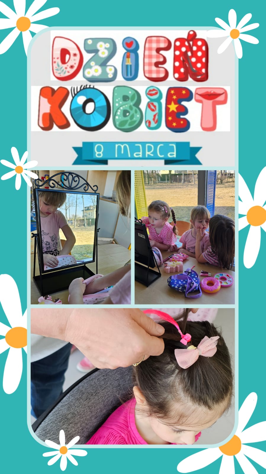 W przedszkolu powstało małe spa oraz salon kosmetyczny, w którym dziewczynki mogły się zrelaksować i świetnie bawić. Były delikatne zabiegi pielęgnacyjne, kolorowe warkoczyki oraz mnóstwo uśmiechu i dobrej zabawy.