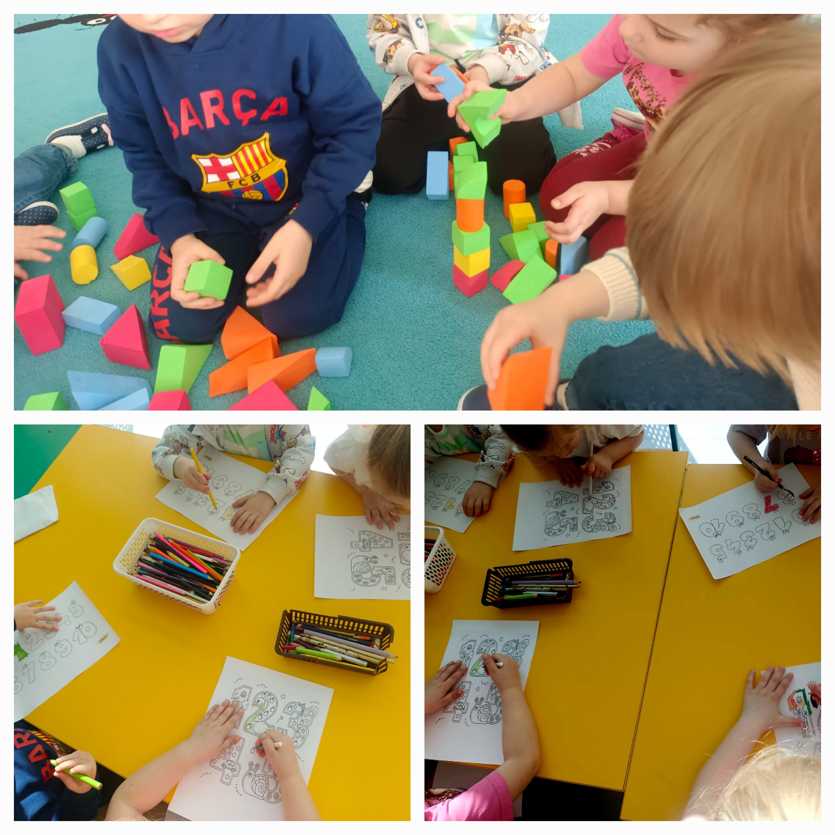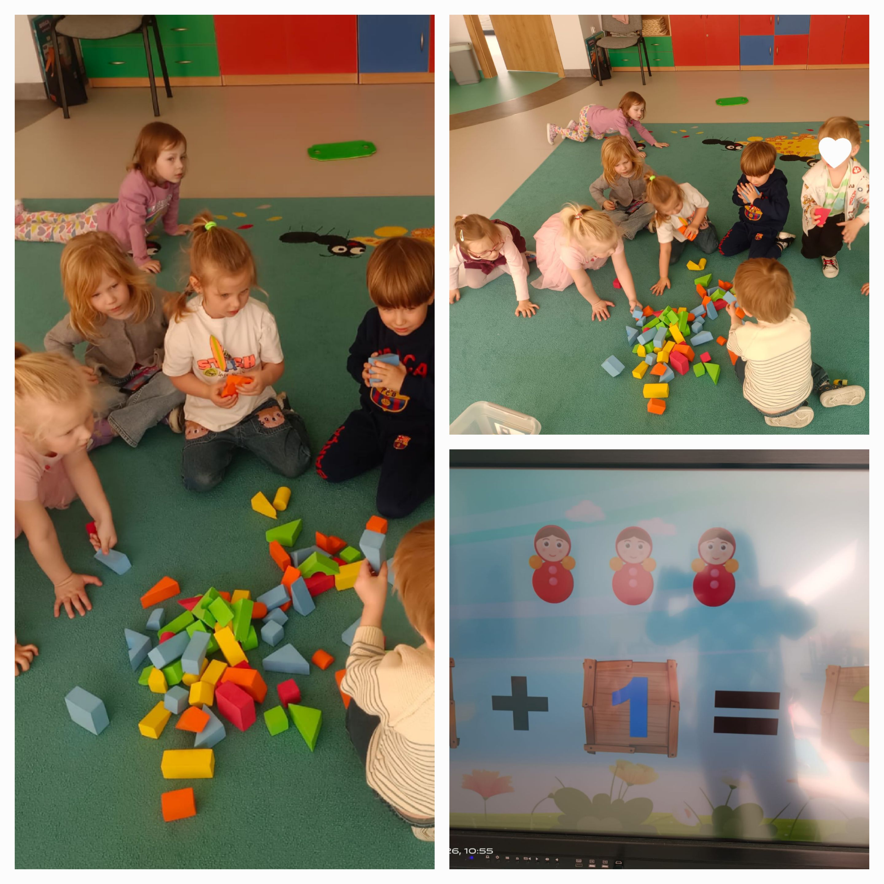 Przedszkolaki brały udział w różnych aktywnościach rozwijających logiczne myślenie i spostrzegawczość. Dzieci liczyły, porównywały, układały budowle z figur przedstrzennych, rozpoznawały kształty oraz rozwiązywały proste zagadki matematyczne. Nie zabrakło także zabaw ruchowych z elementami liczenia oraz układanek i gier, które sprawiły wszystkim wiele radości.