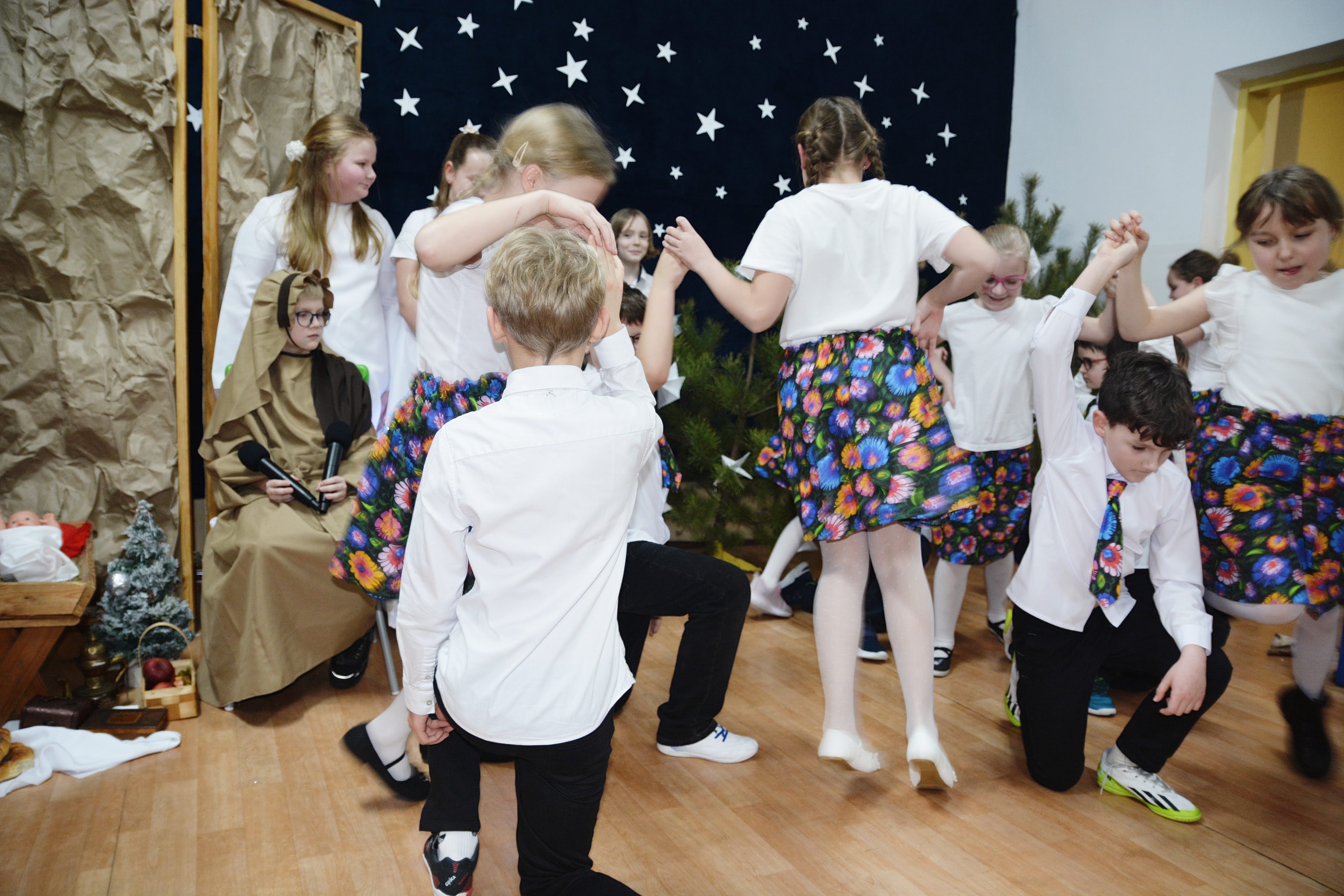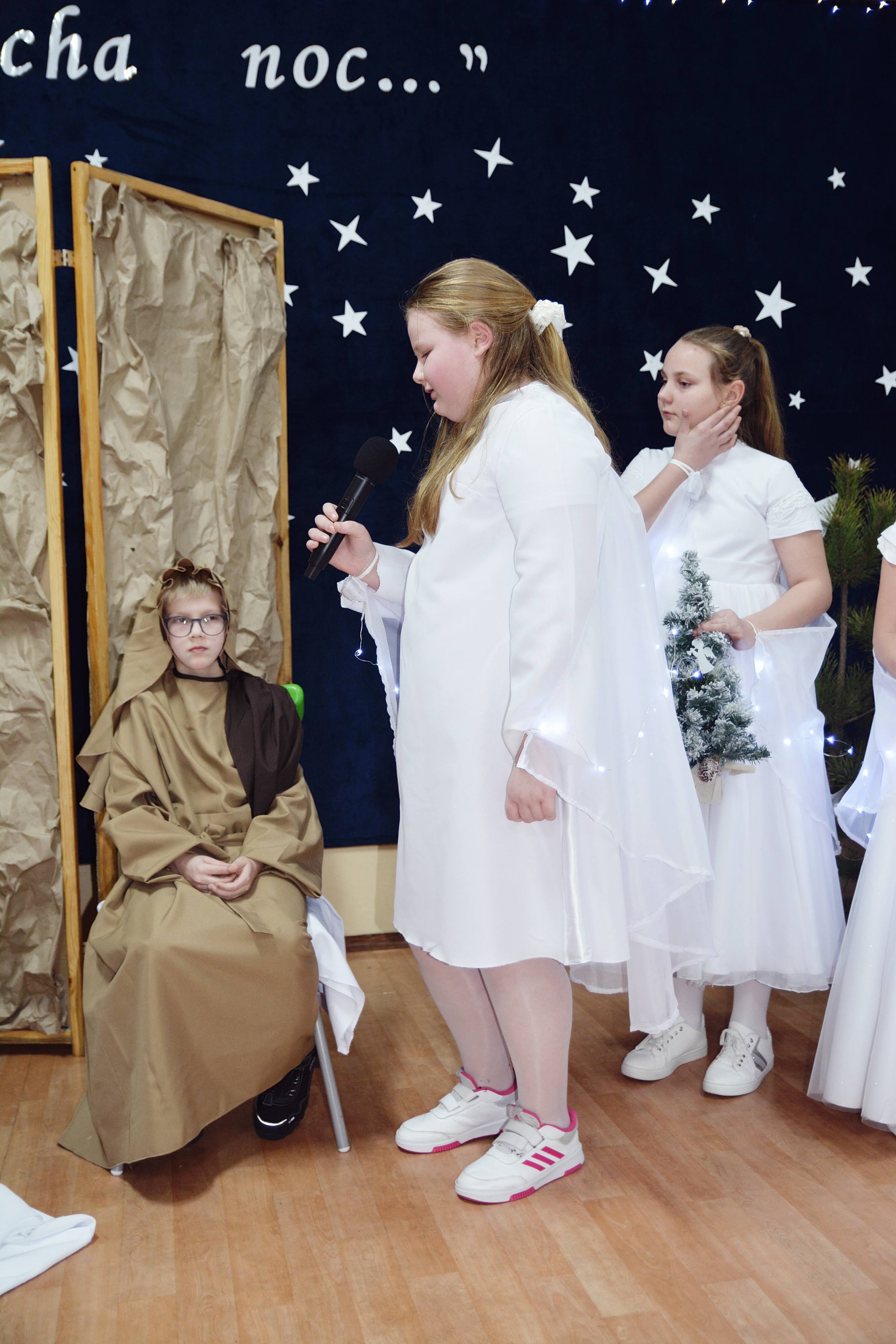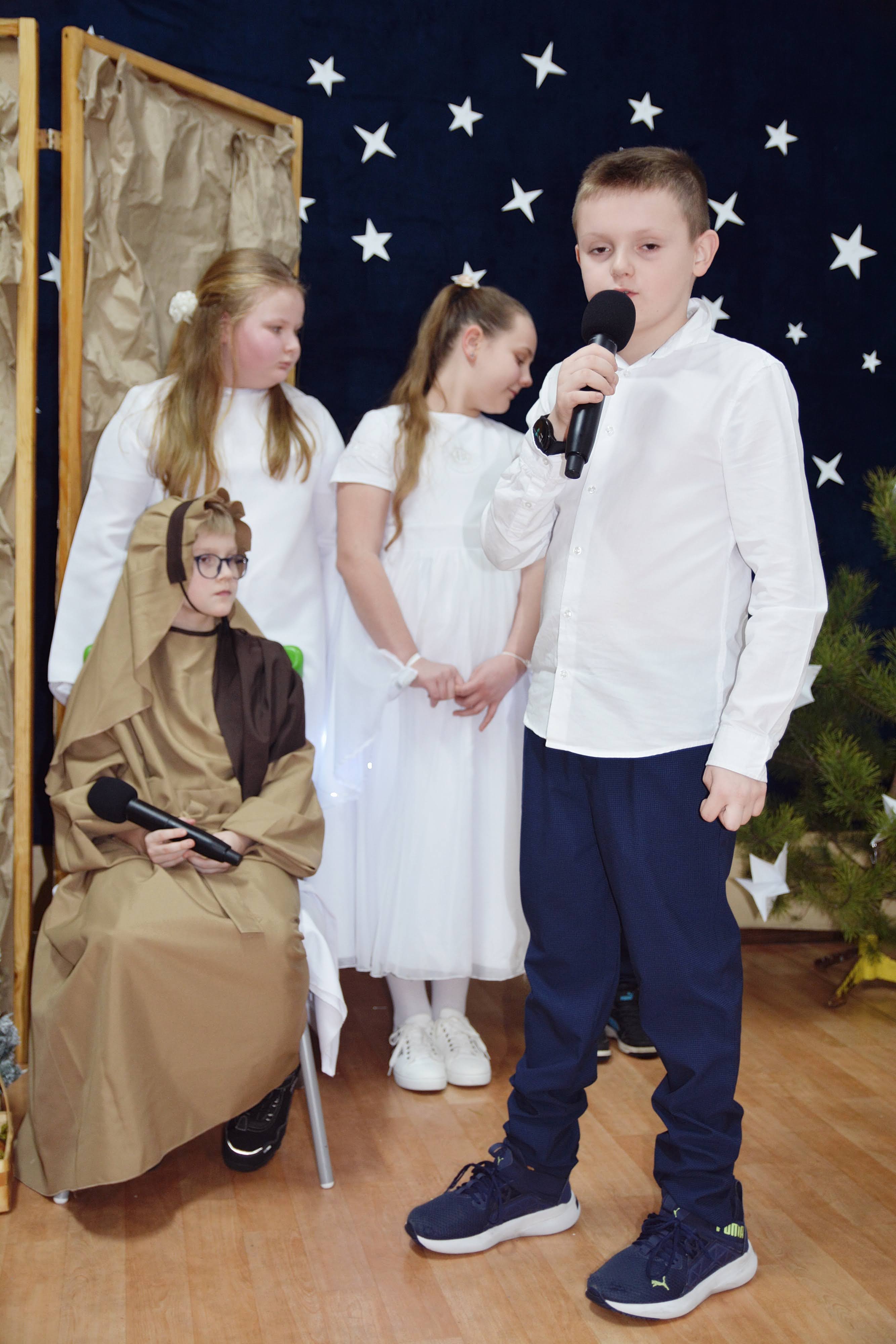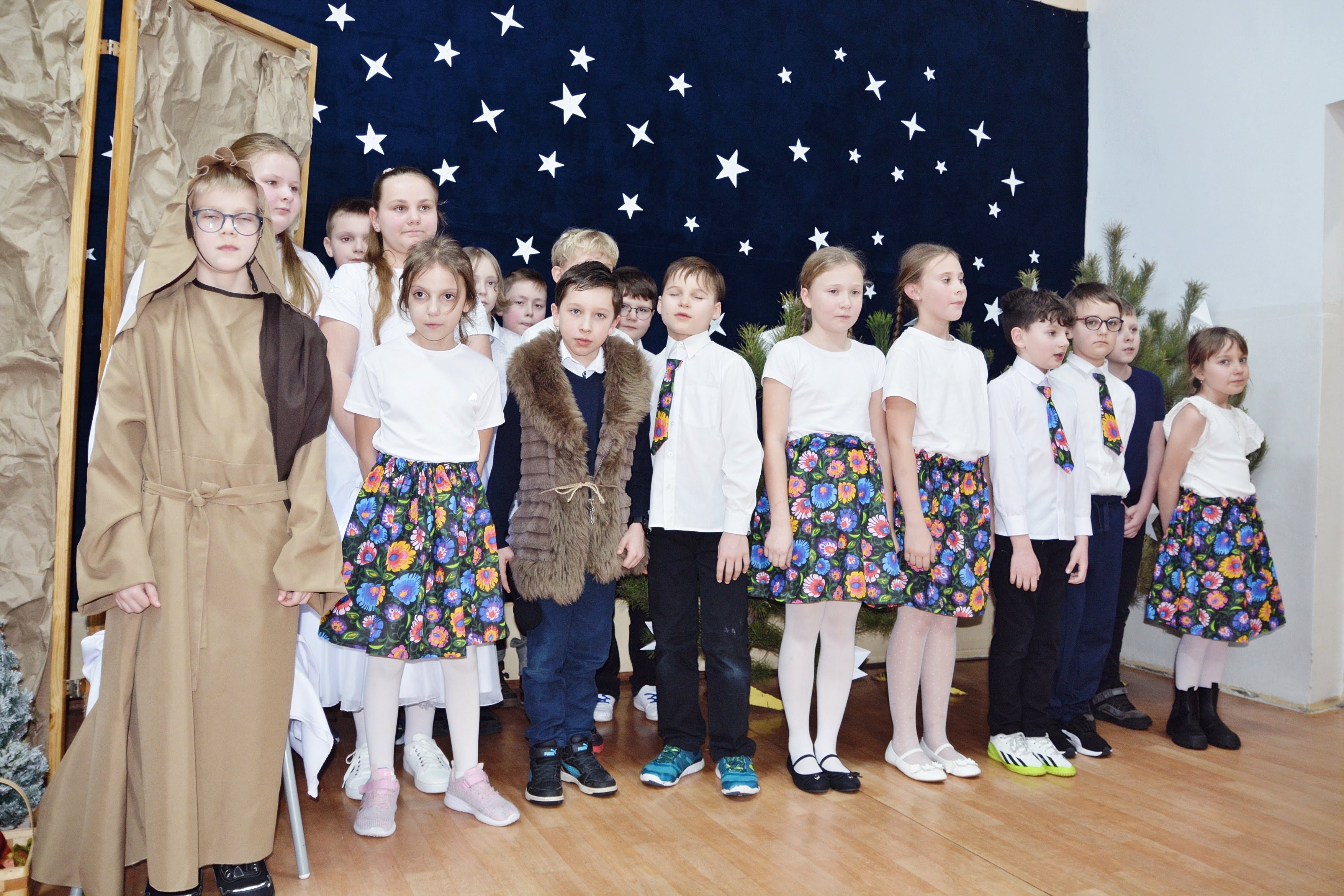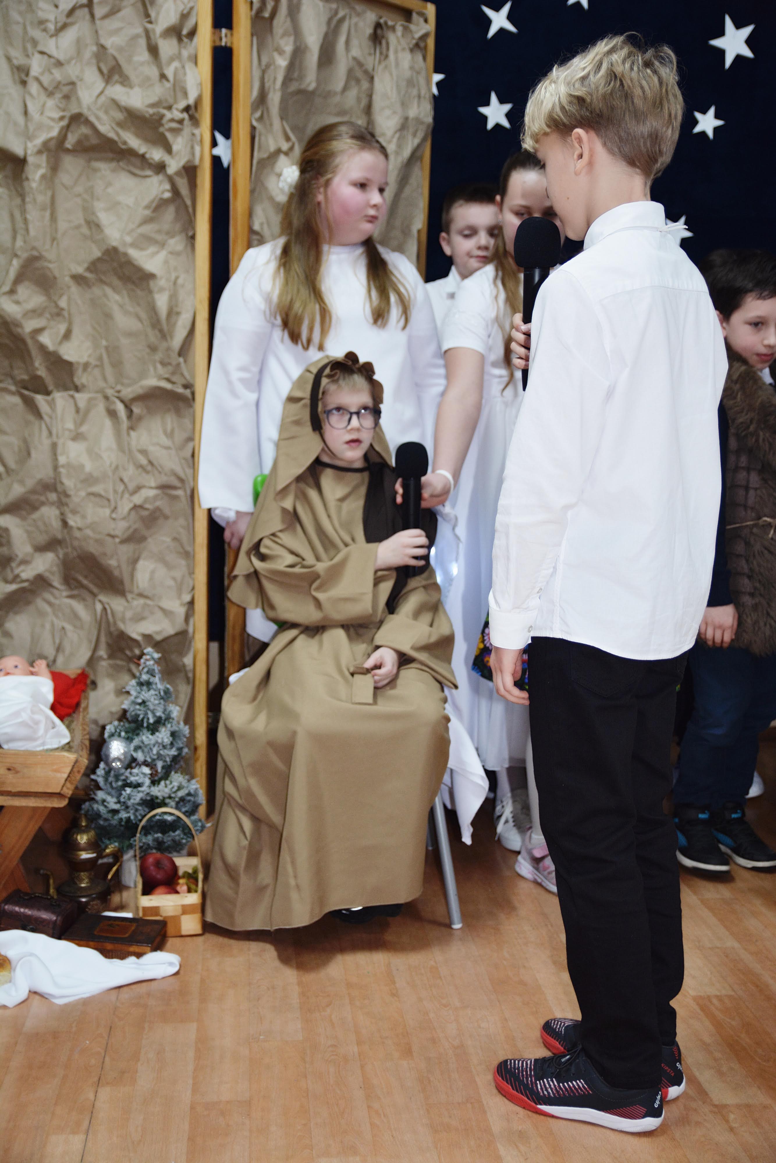 Uczniowie zaprezentowali piękne jasełka, w których nie zabrakło kolęd, pastorałek, wierszy oraz scen ukazujących narodziny Jezusa Chrystusa. Młodzi artyści wykazali się dużym zaangażowaniem, odwagą oraz umiejętnościami aktorskimi, a ich występ wzruszył i zachwycił zgromadzoną publiczność. Niektóre Babcie, poruszone dumą i emocjami, nie kryły wzruszenia, uroniły łzy radości.