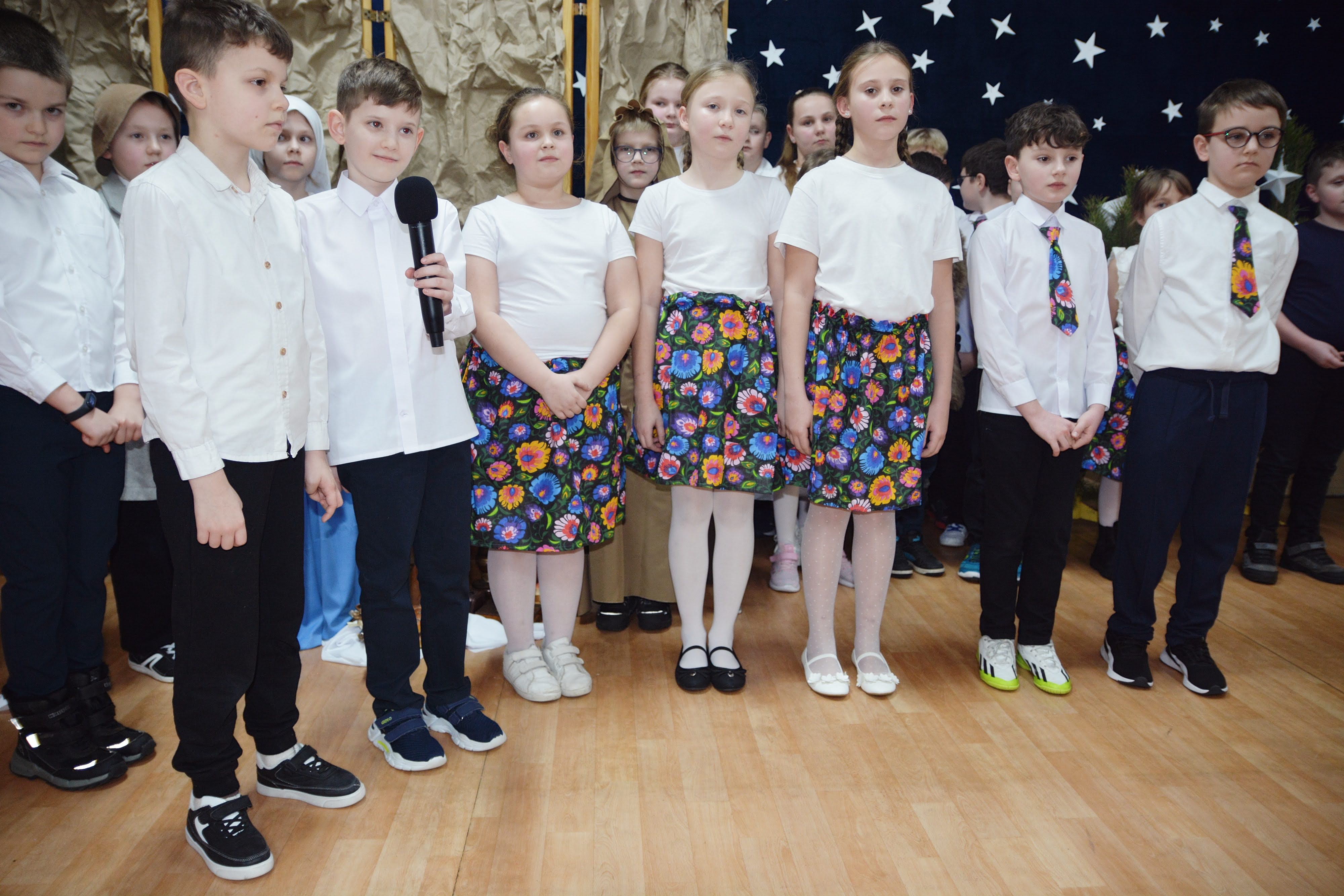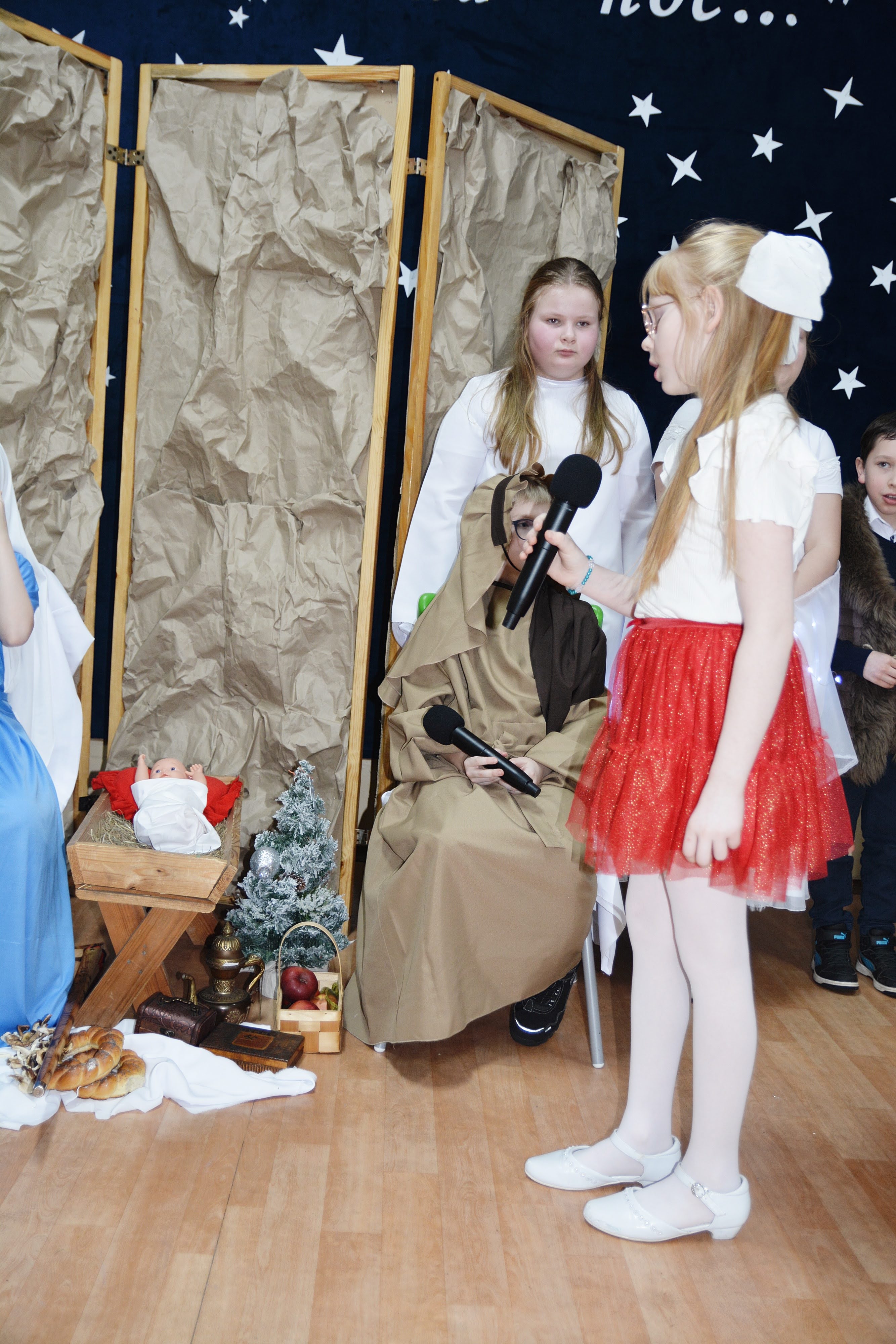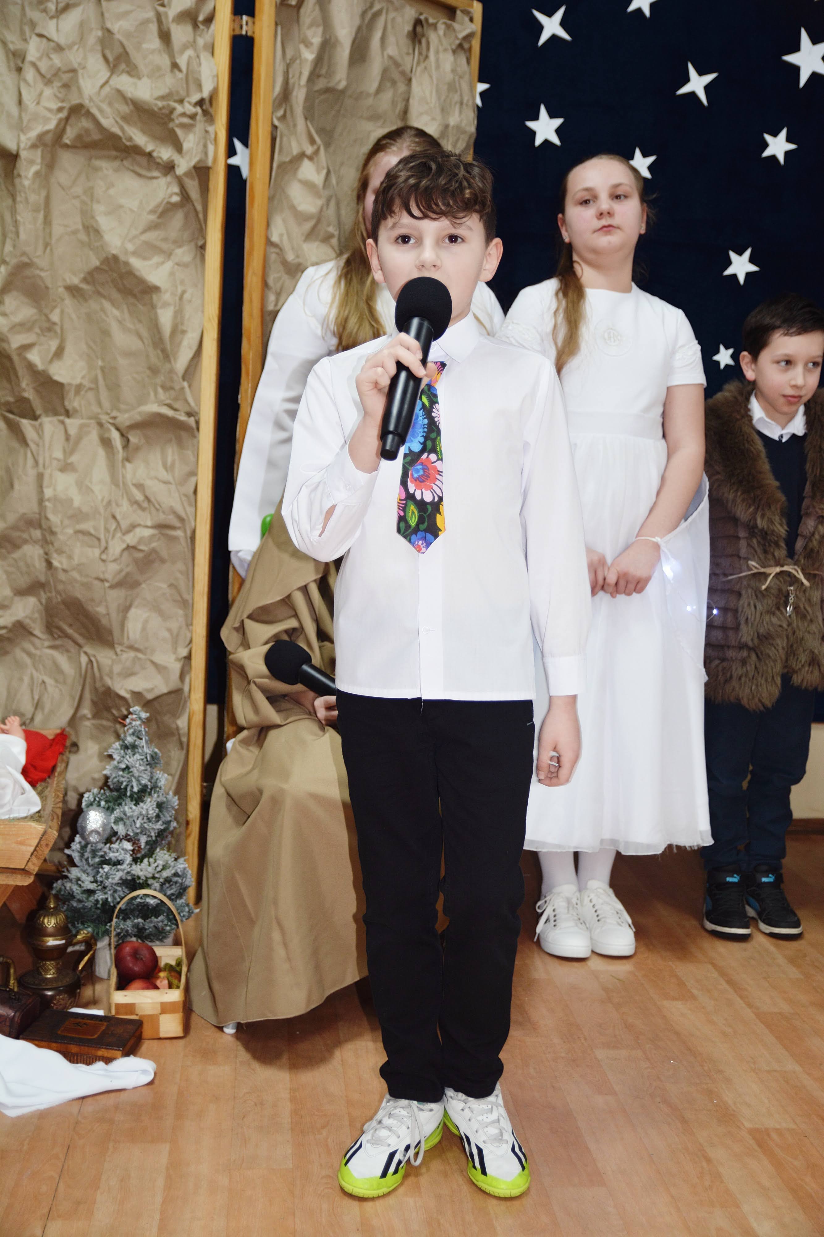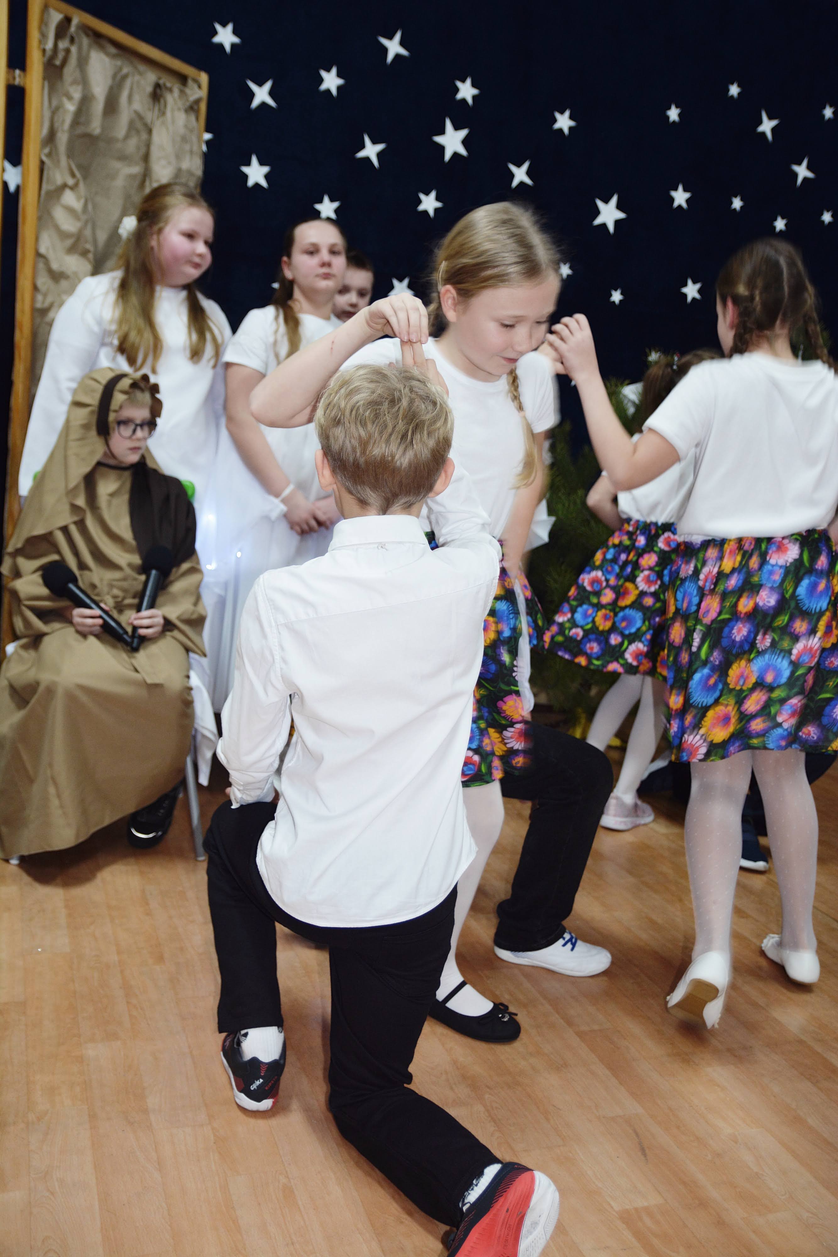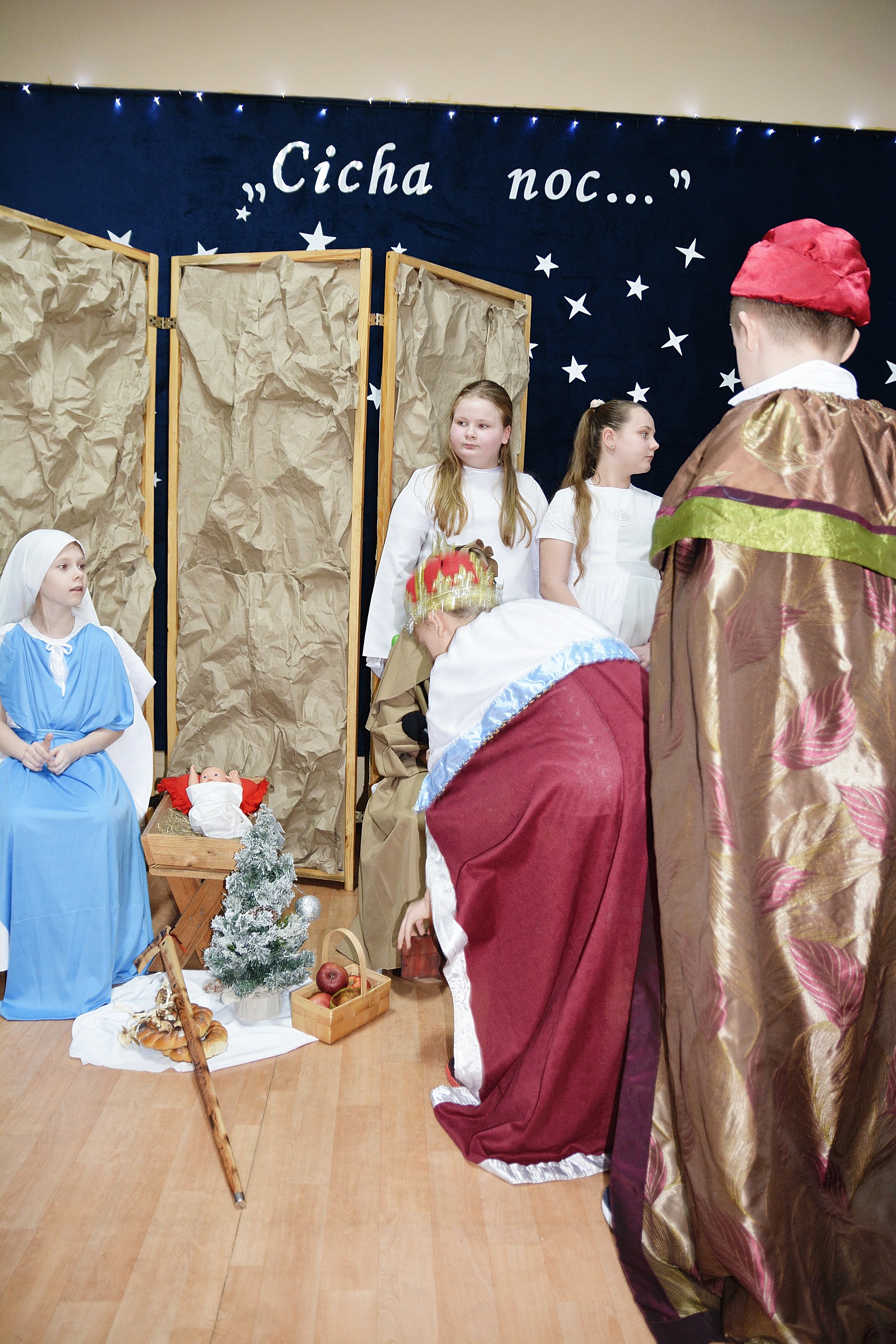 Uczniowie zaprezentowali piękne jasełka, w których nie zabrakło kolęd, pastorałek, wierszy oraz scen ukazujących narodziny Jezusa Chrystusa. Młodzi artyści wykazali się dużym zaangażowaniem, odwagą oraz umiejętnościami aktorskimi, a ich występ wzruszył i zachwycił zgromadzoną publiczność. Niektóre Babcie, poruszone dumą i emocjami, nie kryły wzruszenia, uroniły łzy radości.