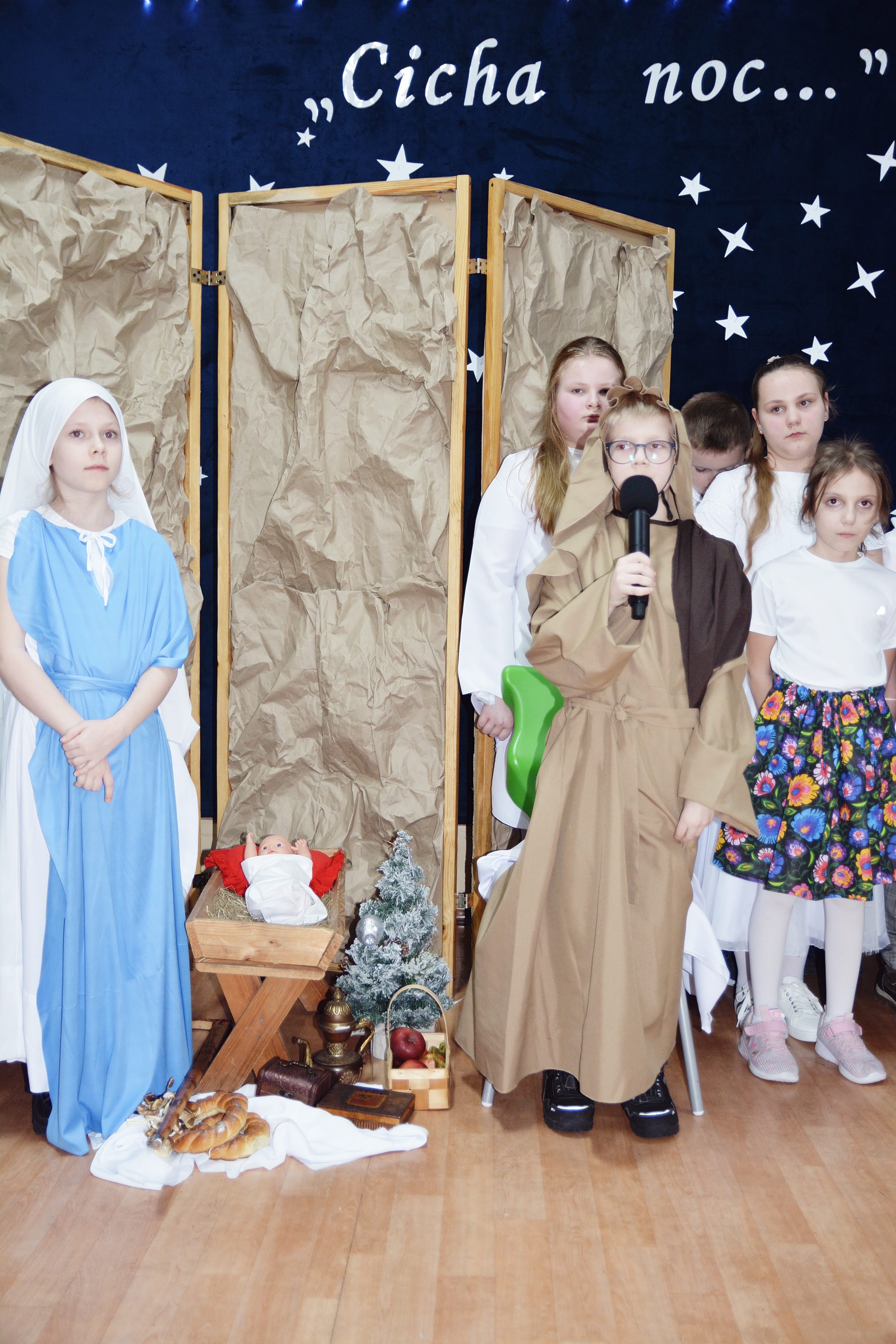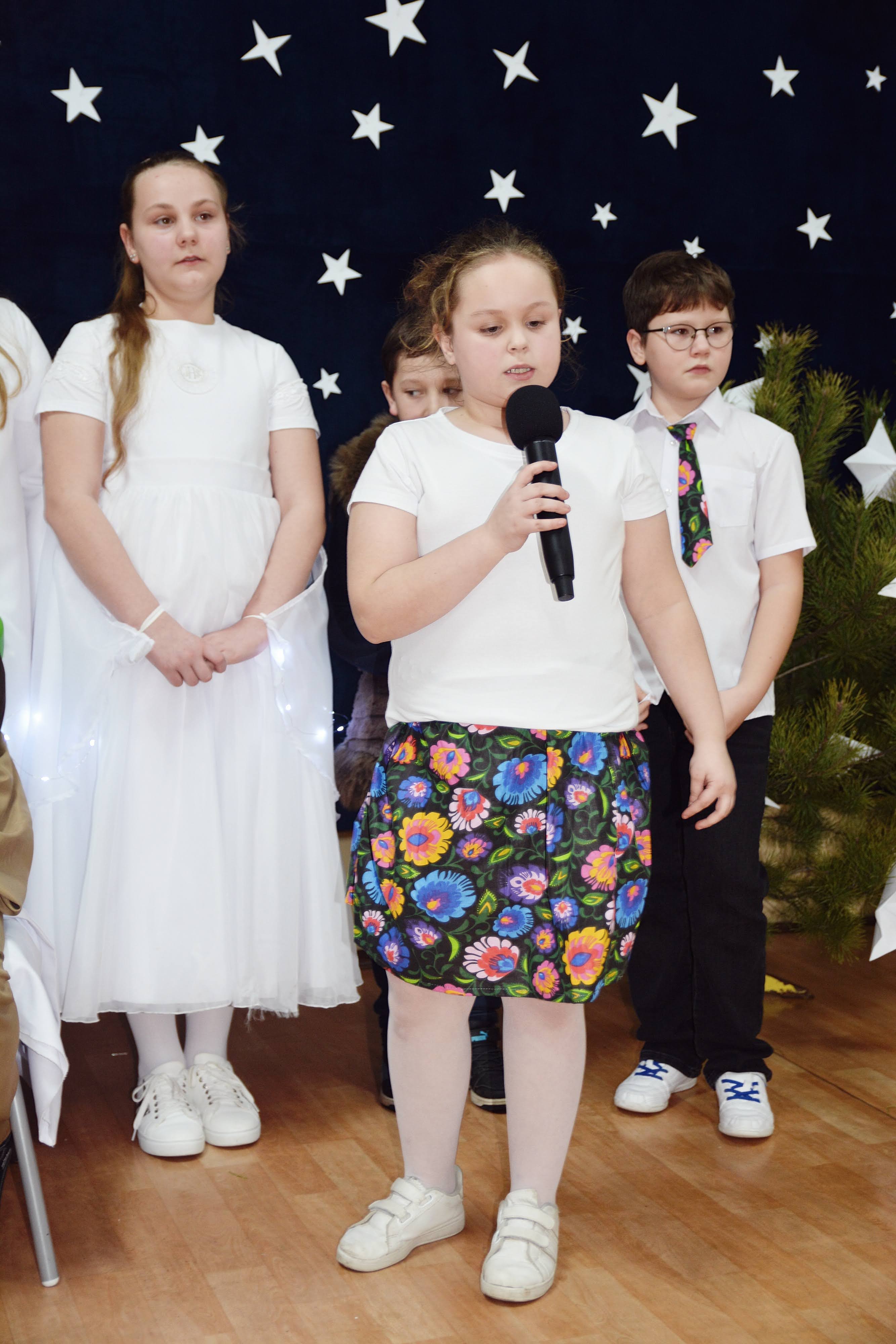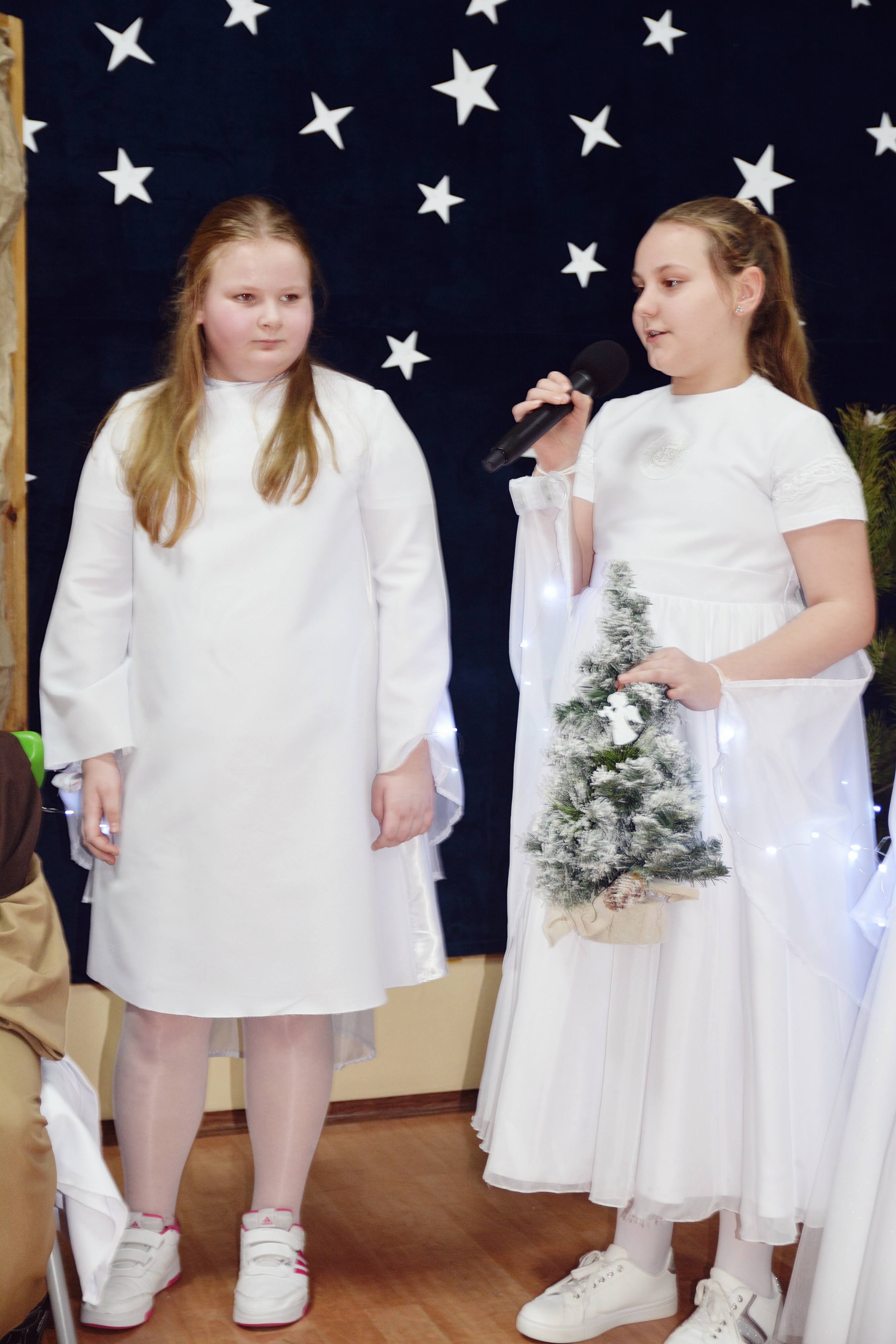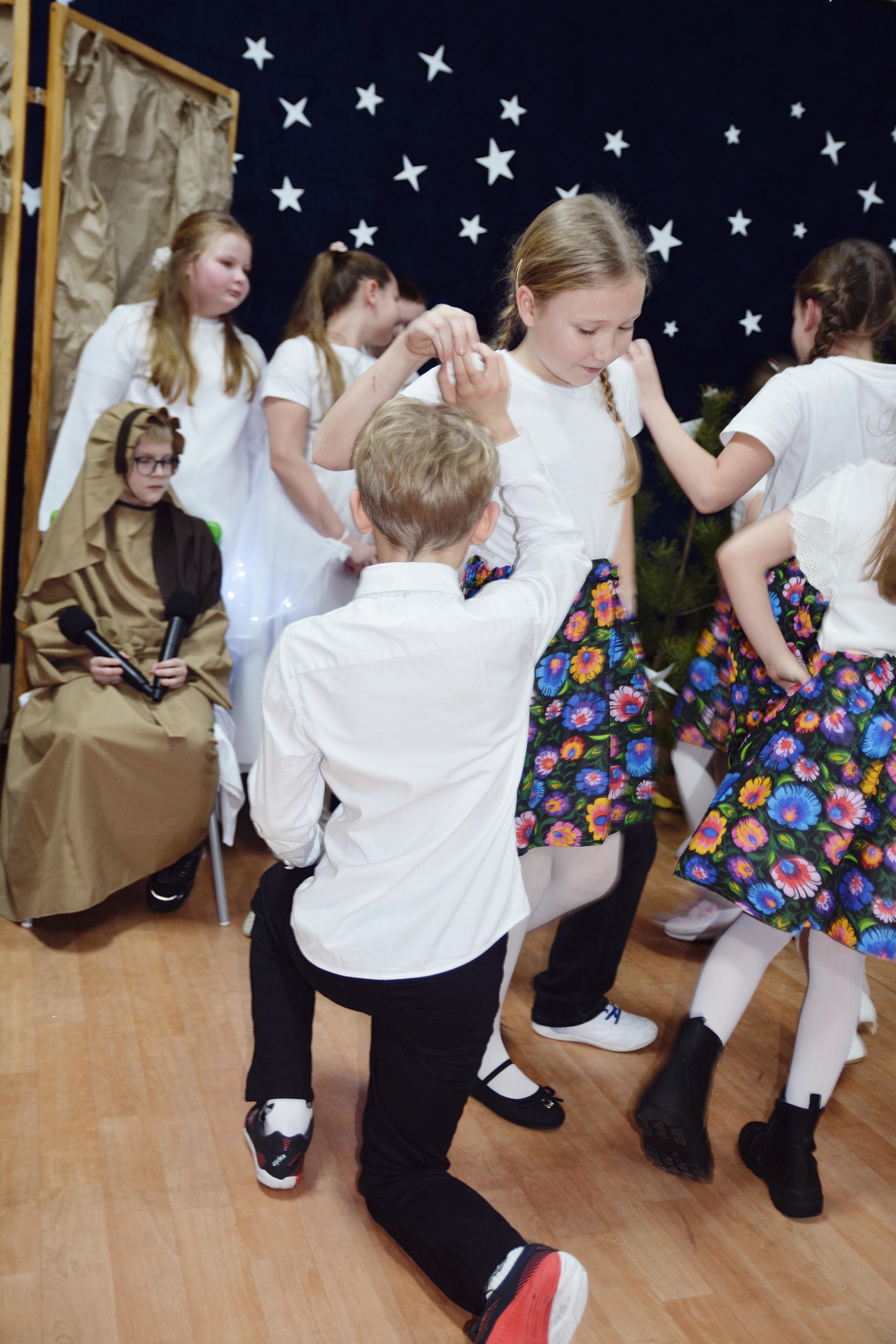 Uczniowie zaprezentowali piękne jasełka, w których nie zabrakło kolęd, pastorałek, wierszy oraz scen ukazujących narodziny Jezusa Chrystusa. Młodzi artyści wykazali się dużym zaangażowaniem, odwagą oraz umiejętnościami aktorskimi, a ich występ wzruszył i zachwycił zgromadzoną publiczność. Niektóre Babcie, poruszone dumą i emocjami, nie kryły wzruszenia, uroniły łzy radości.