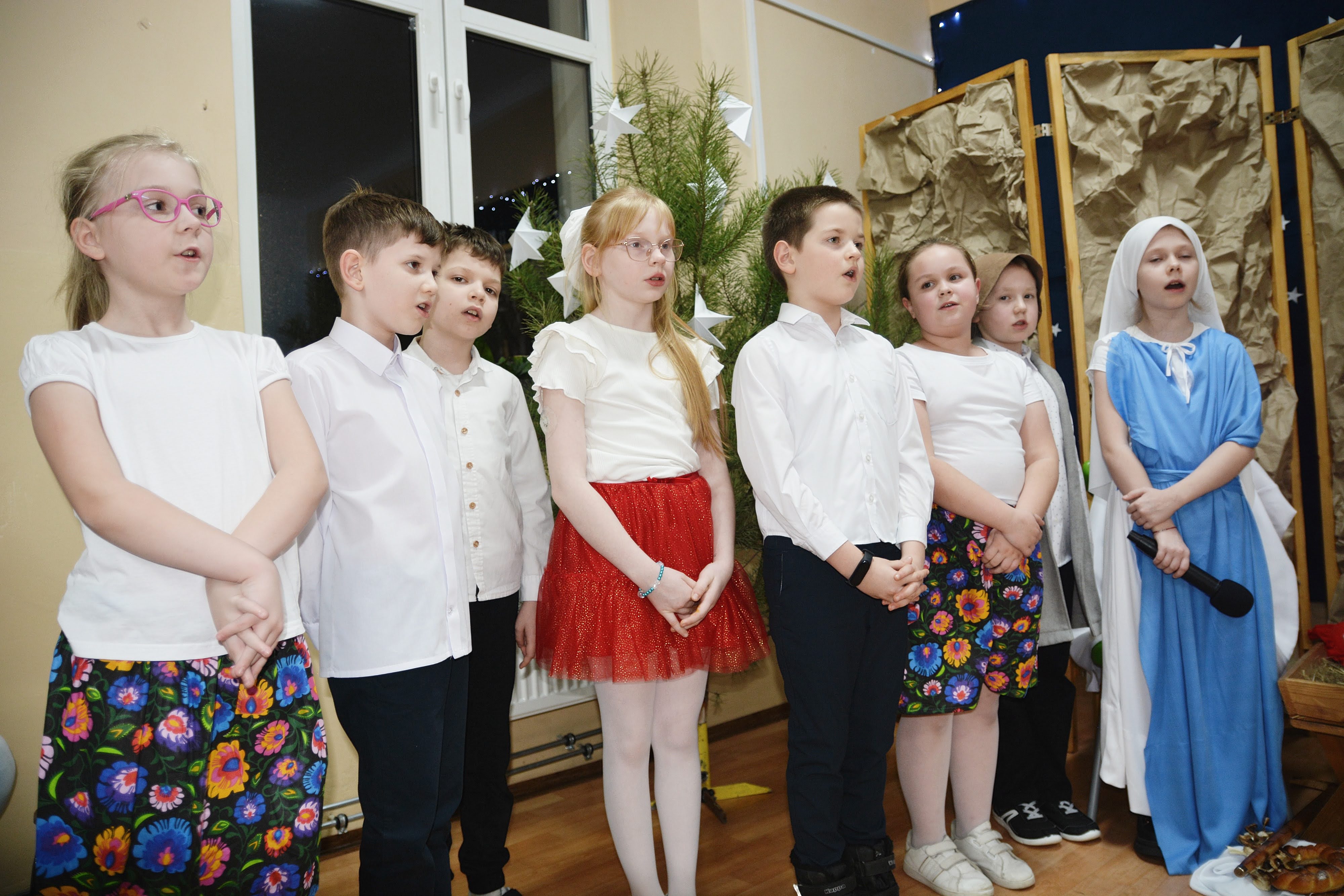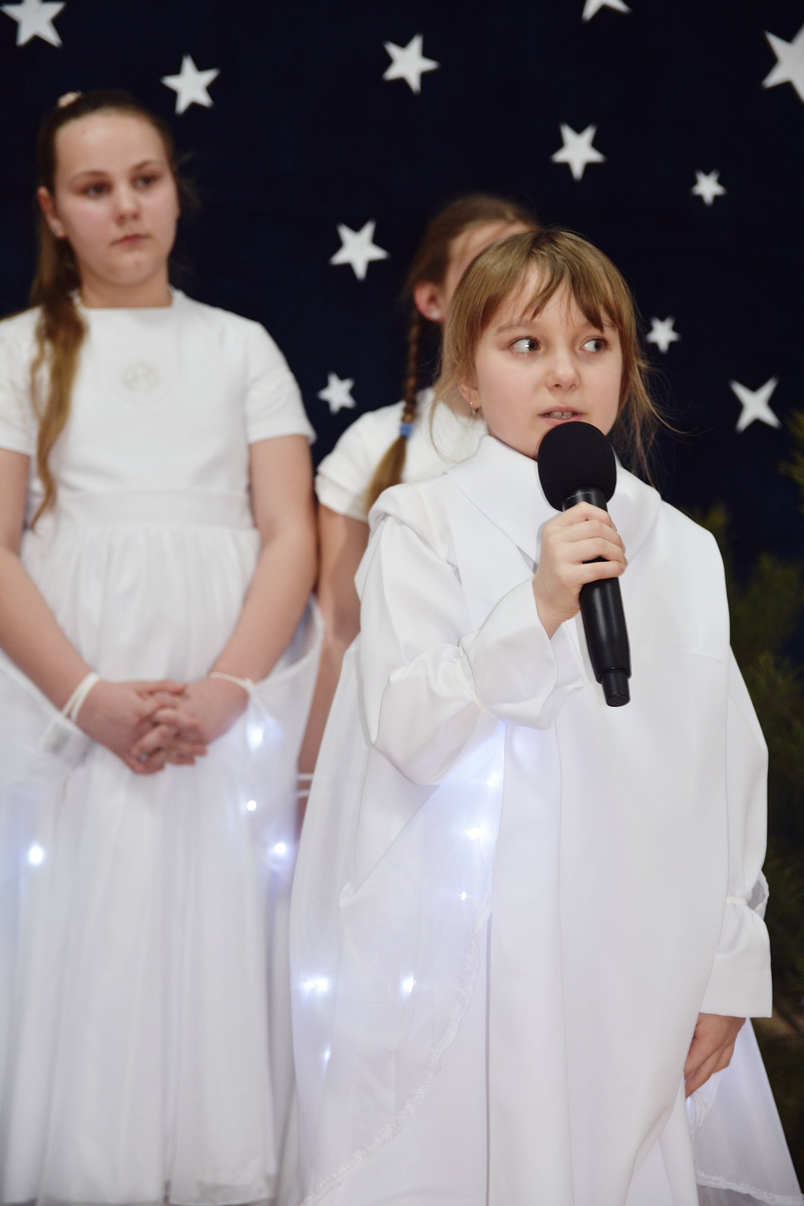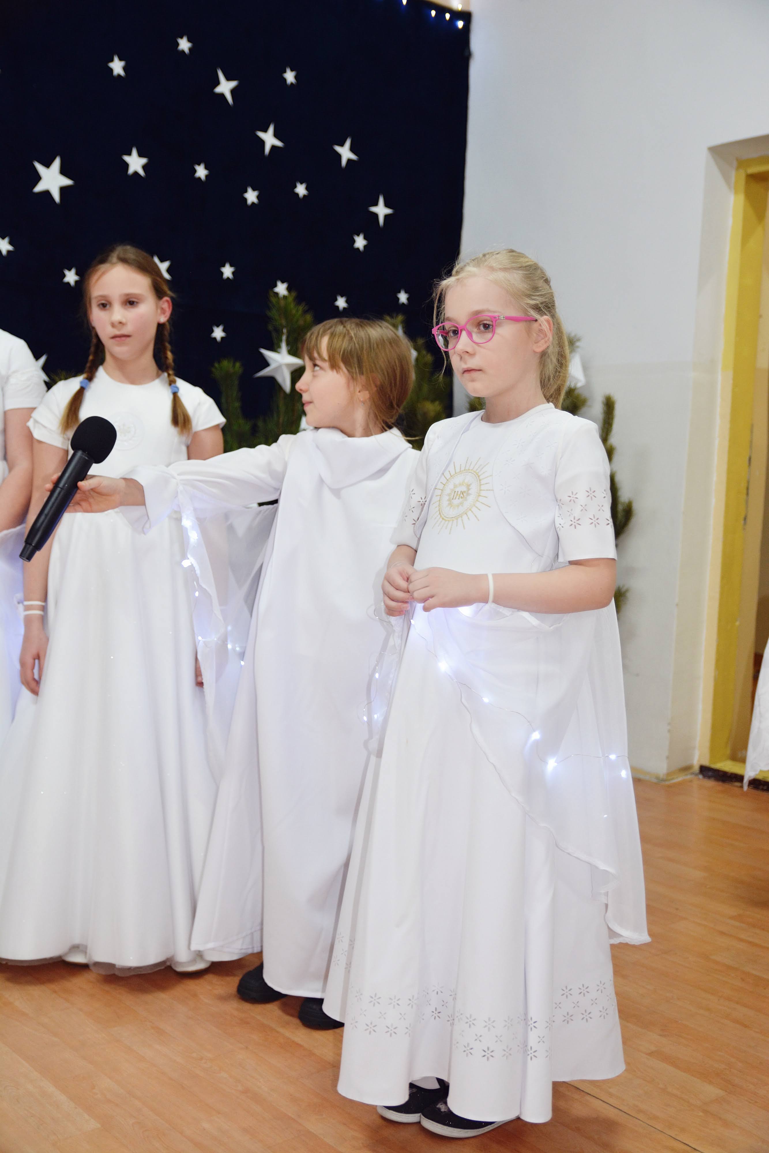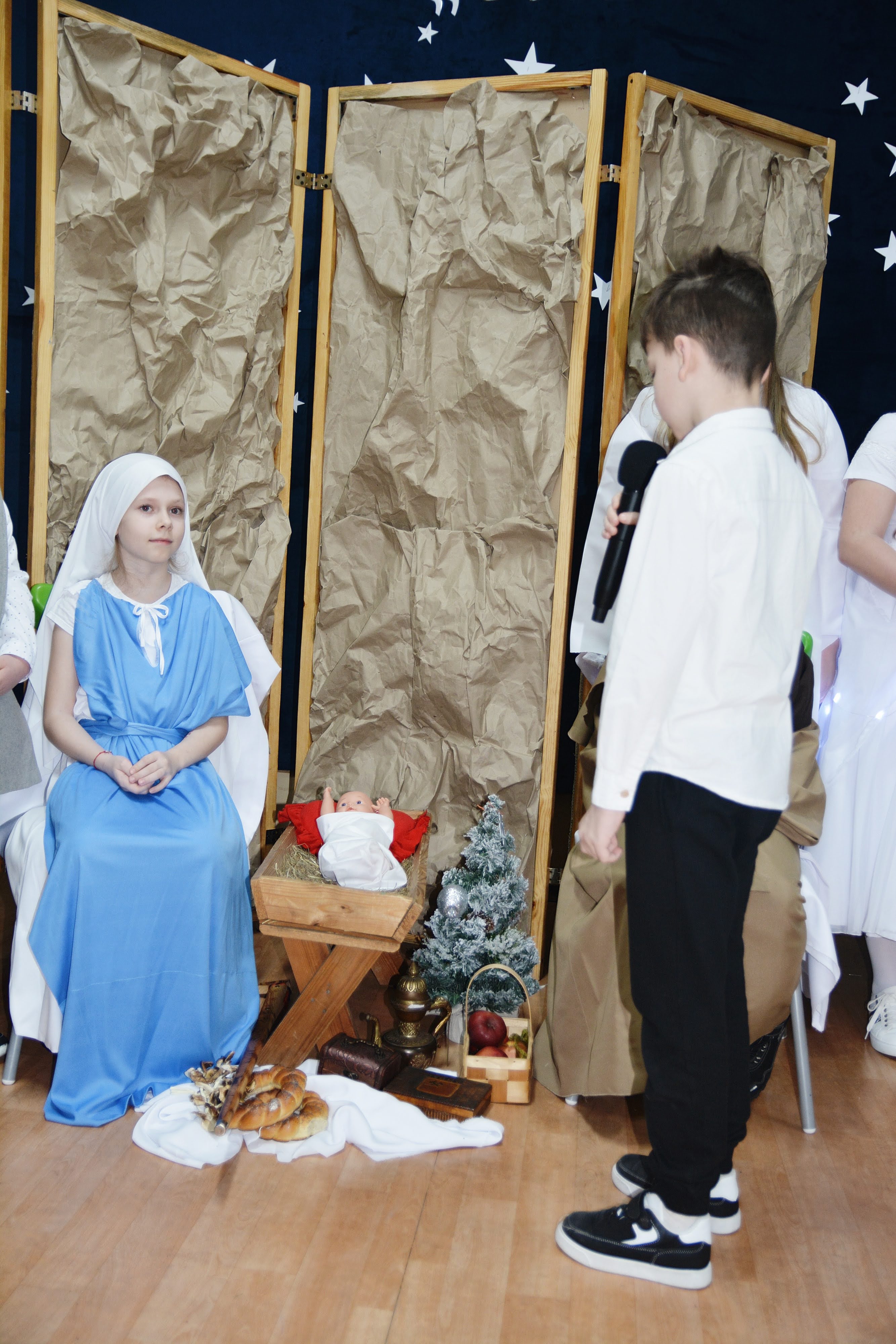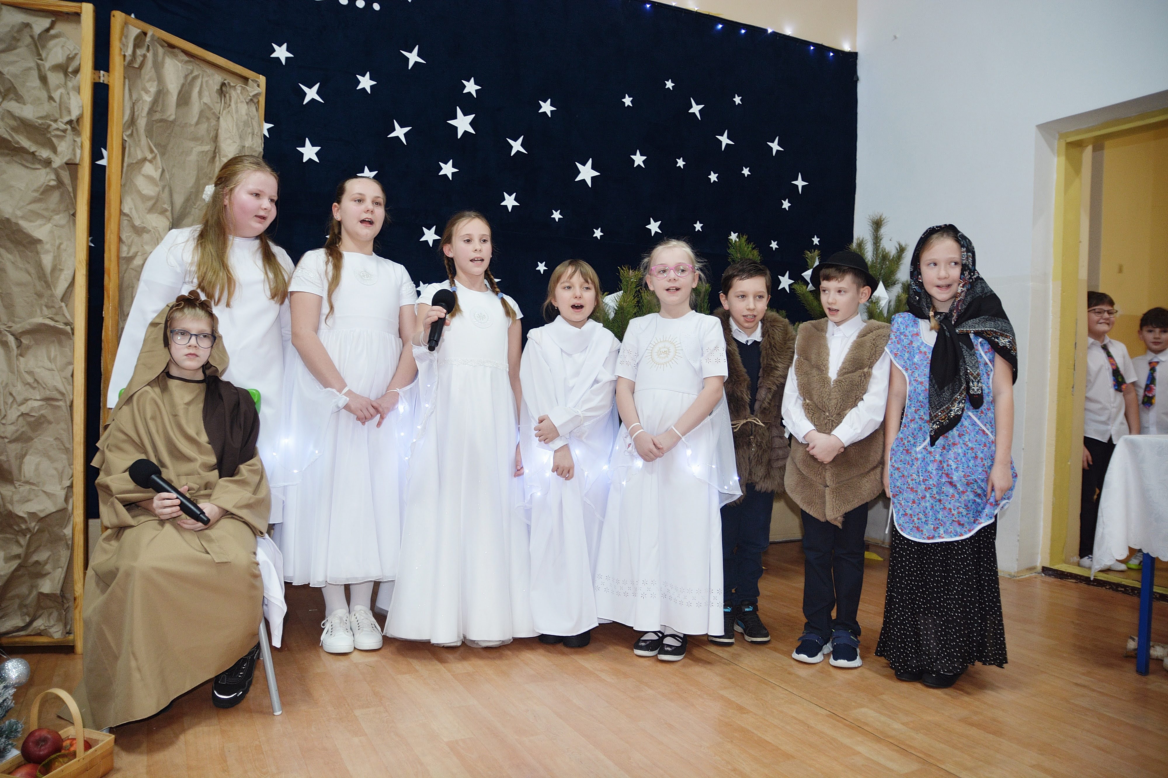 Uczniowie zaprezentowali piękne jasełka, w których nie zabrakło kolęd, pastorałek, wierszy oraz scen ukazujących narodziny Jezusa Chrystusa. Młodzi artyści wykazali się dużym zaangażowaniem, odwagą oraz umiejętnościami aktorskimi, a ich występ wzruszył i zachwycił zgromadzoną publiczność. Niektóre Babcie, poruszone dumą i emocjami, nie kryły wzruszenia, uroniły łzy radości.