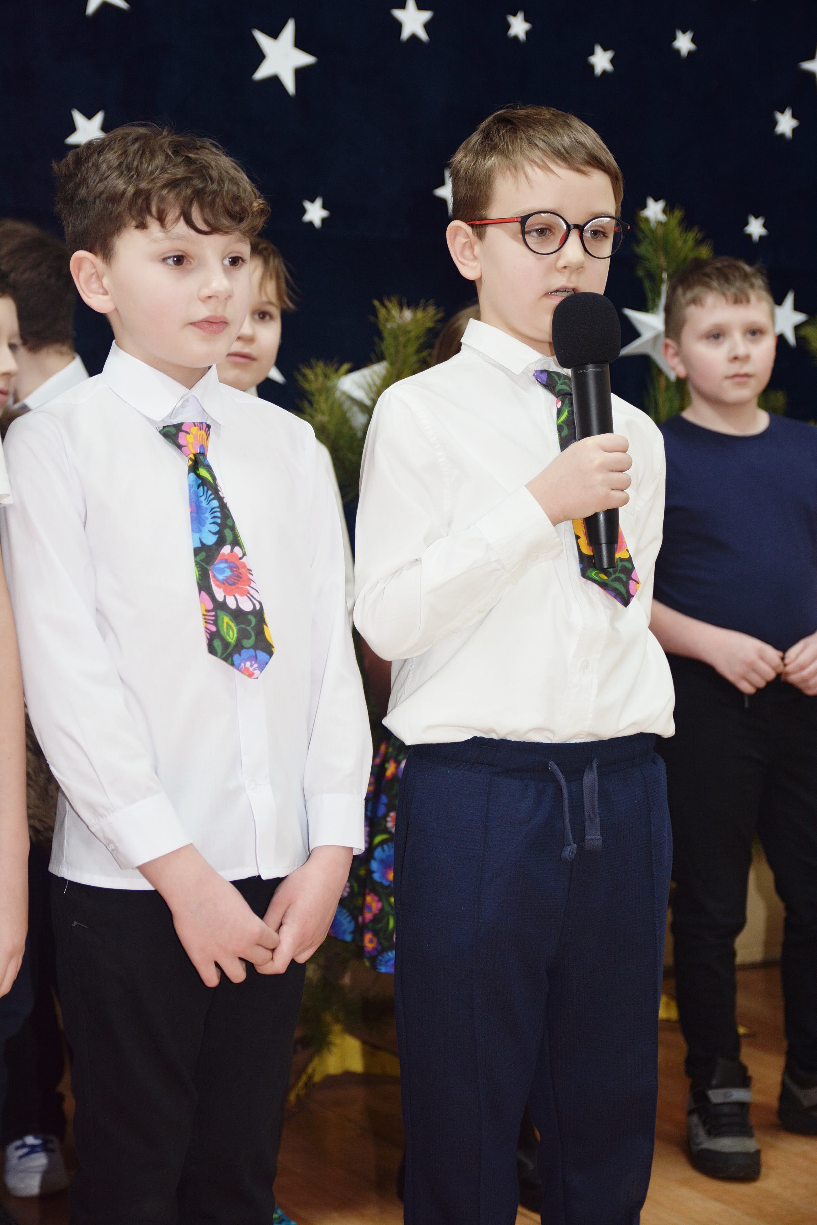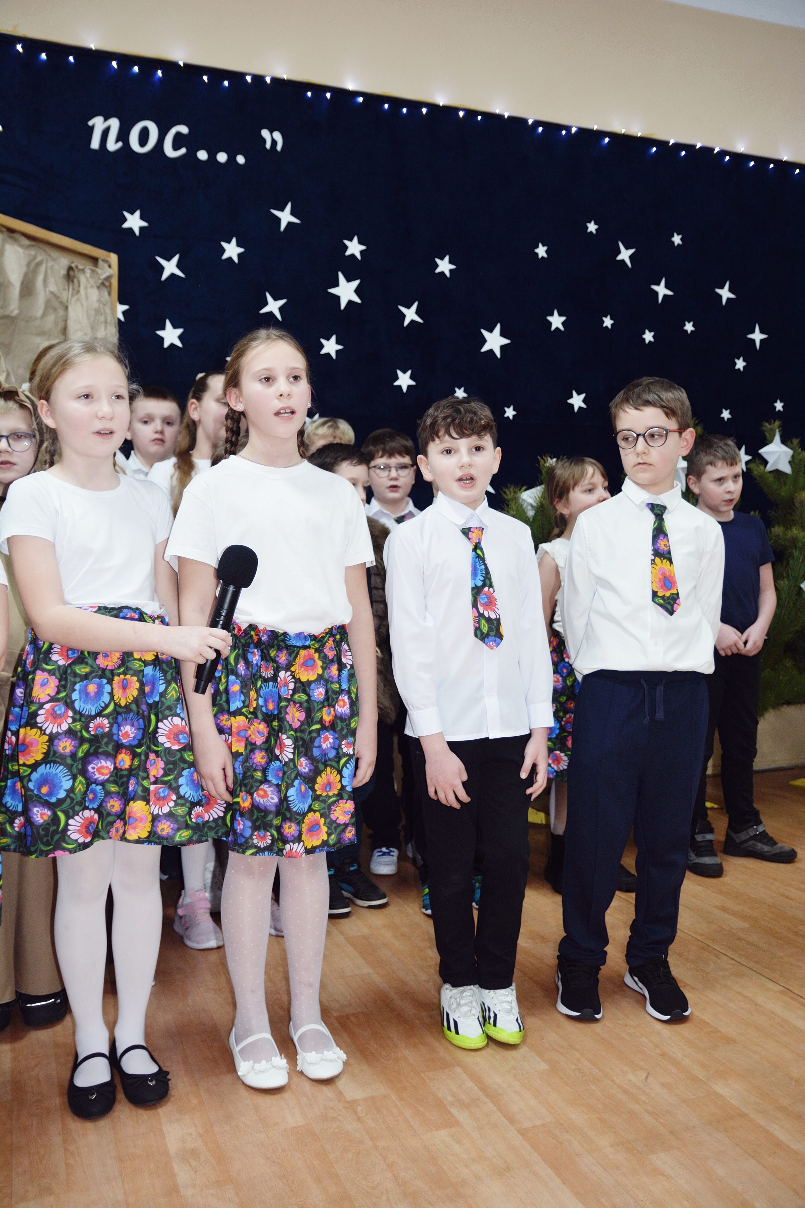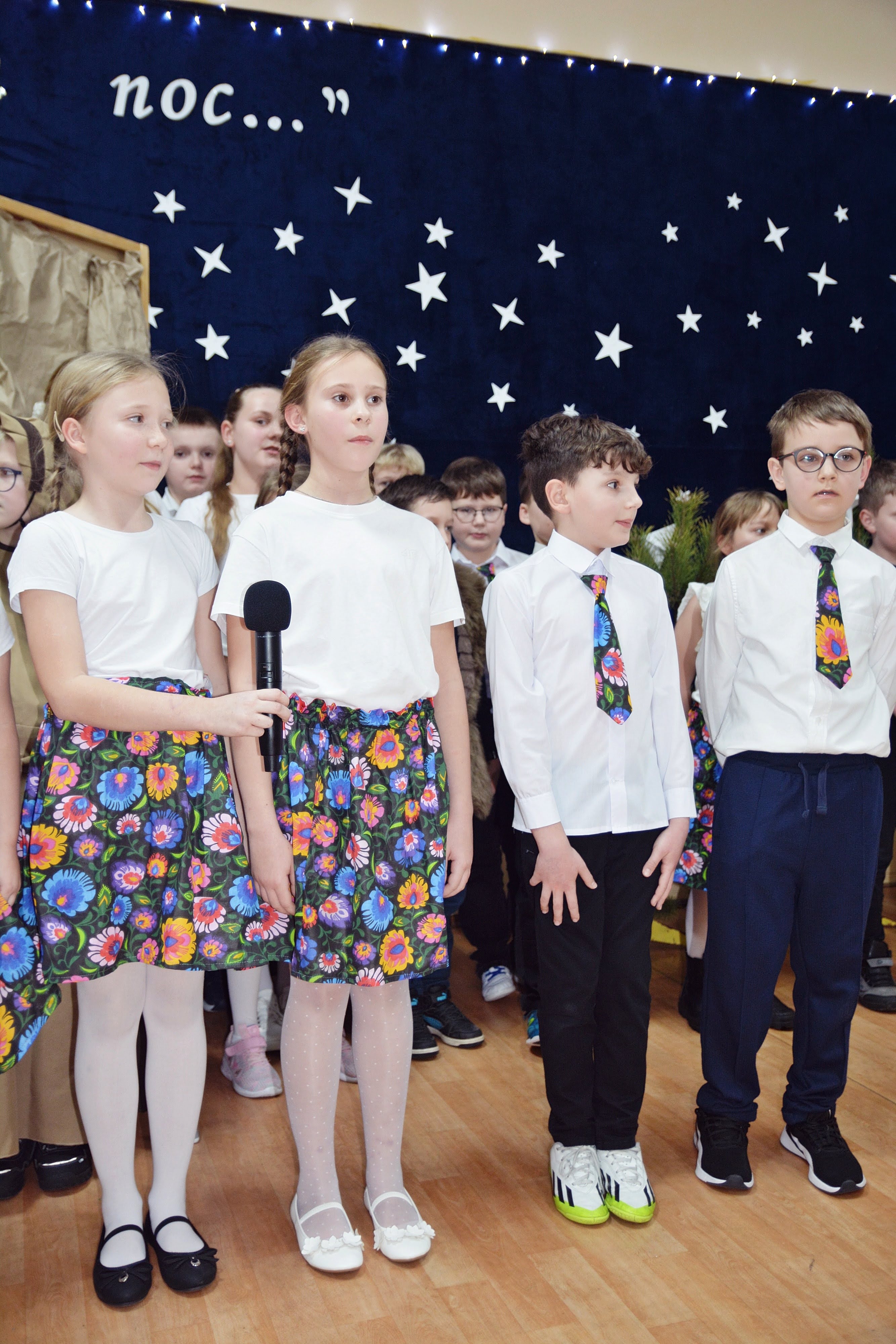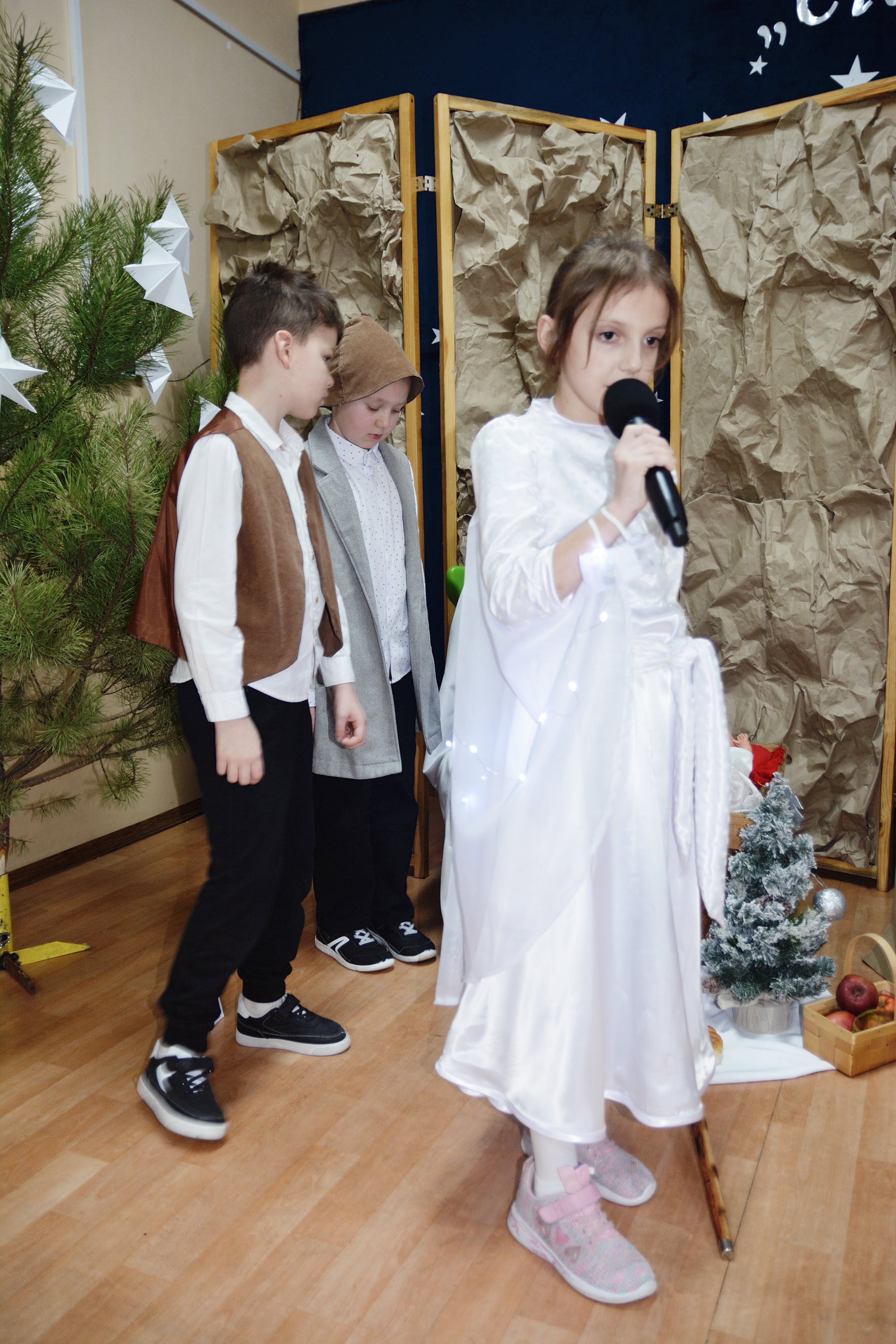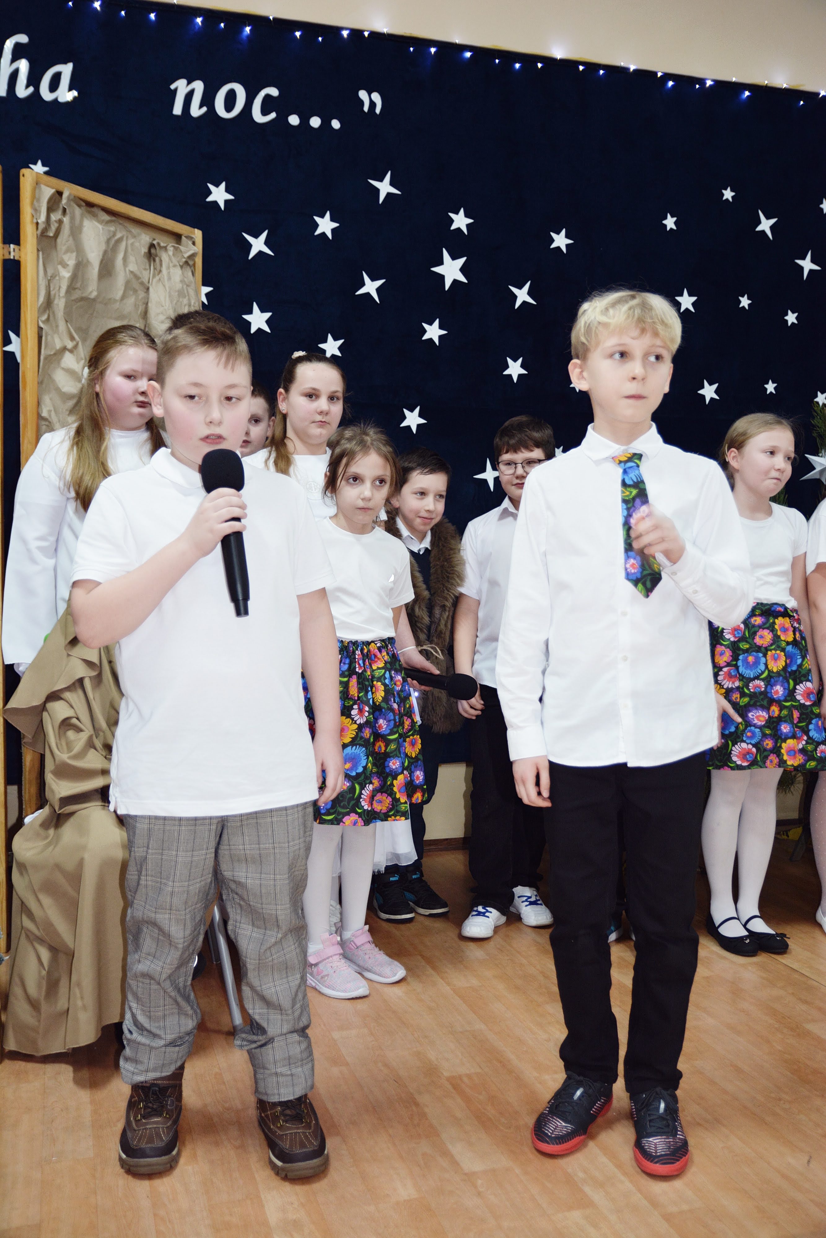 Uczniowie zaprezentowali piękne jasełka, w których nie zabrakło kolęd, pastorałek, wierszy oraz scen ukazujących narodziny Jezusa Chrystusa. Młodzi artyści wykazali się dużym zaangażowaniem, odwagą oraz umiejętnościami aktorskimi, a ich występ wzruszył i zachwycił zgromadzoną publiczność. Niektóre Babcie, poruszone dumą i emocjami, nie kryły wzruszenia, uroniły łzy radości.