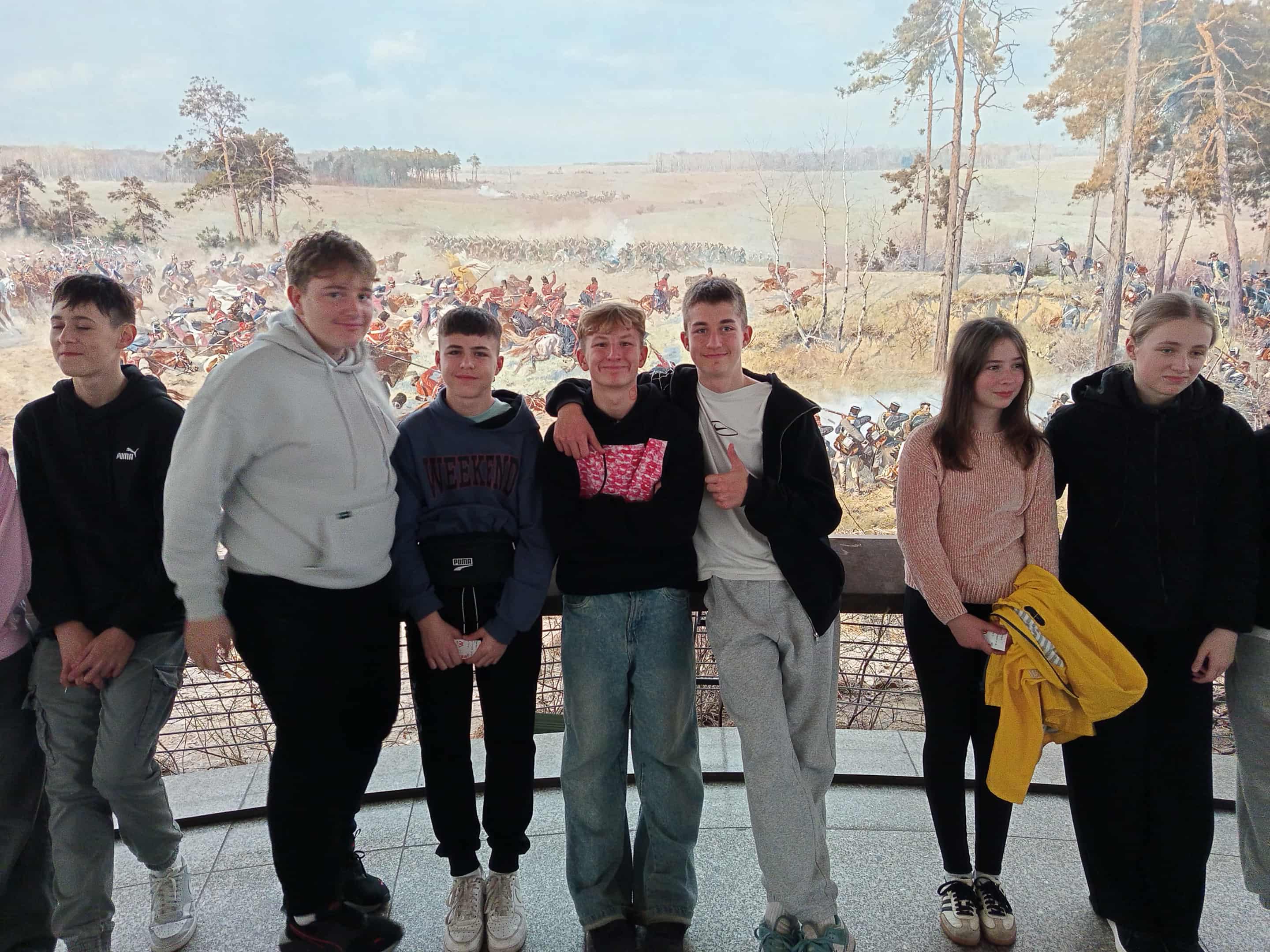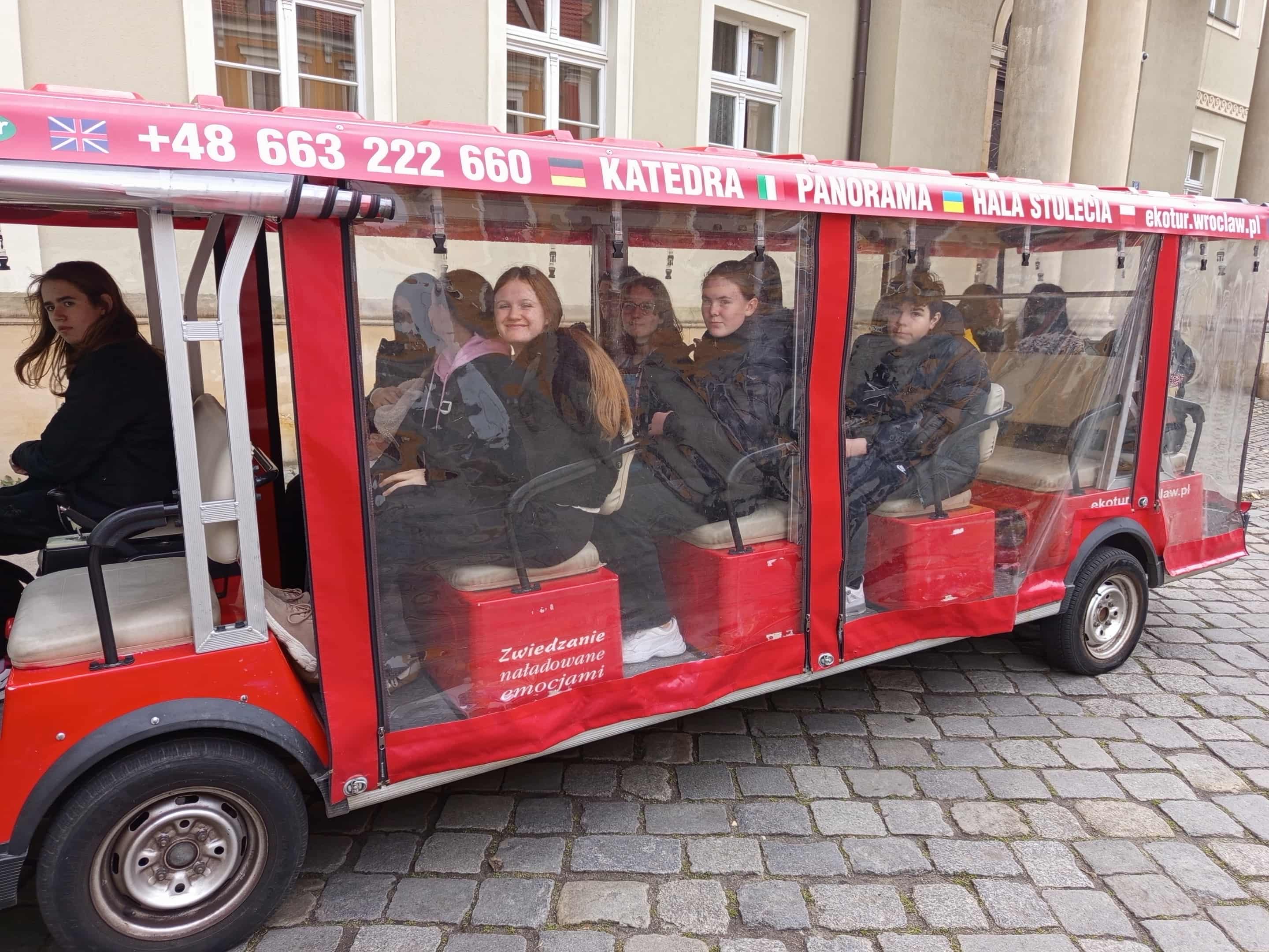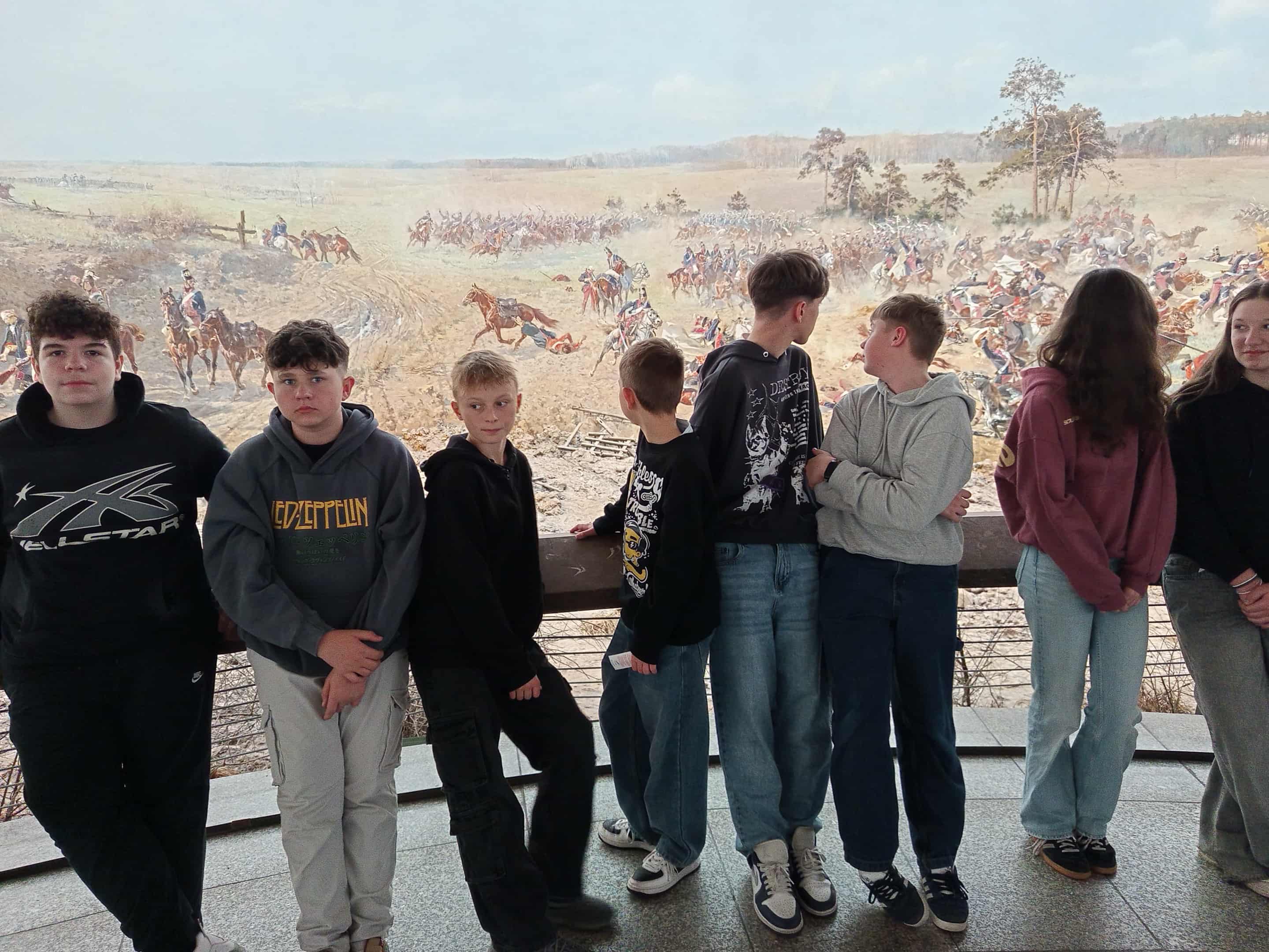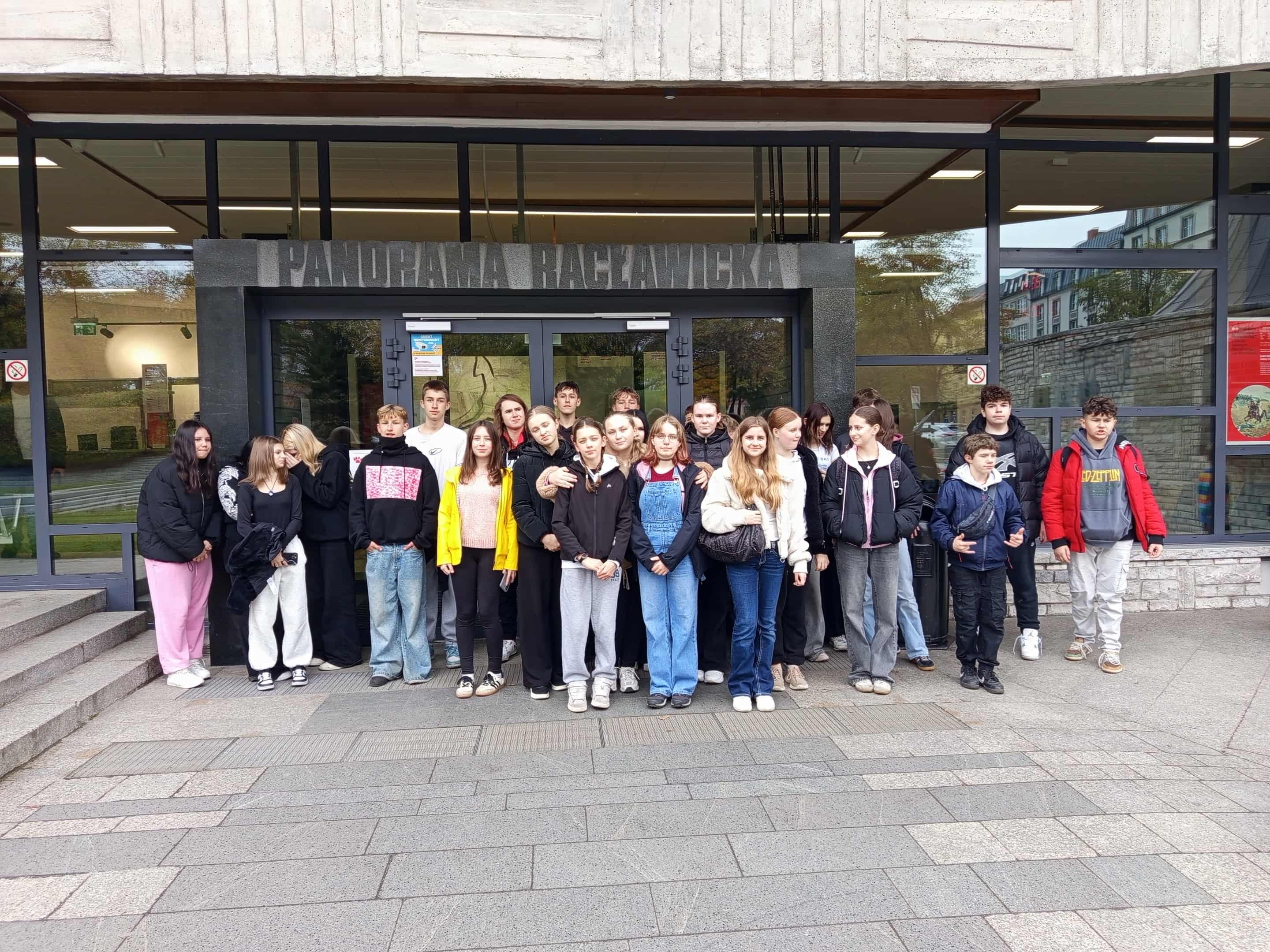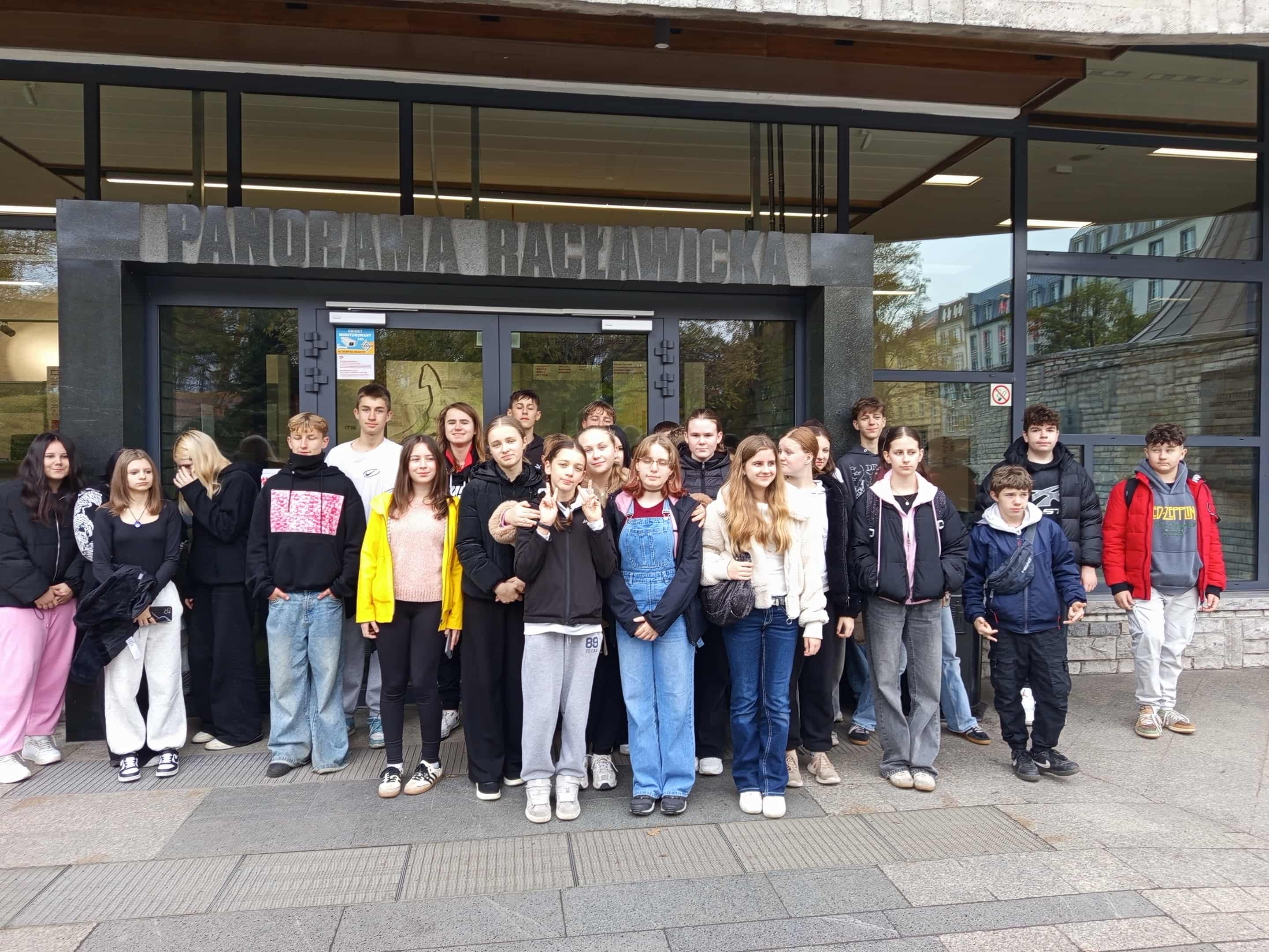 Zwiedzając Wrocław meleksem zobaczyliśmy najważniejsze zabytki tego miasta – Rynek, Ratusz, Katedrę św. Jana Chrzciciela oraz Most Tumski. Uczniowie z zaciekawieniem słuchali opowieści o historii miasta i jego zabytkach. Szczególnie podobały im się kolorowe kamienice i liczne krasnale, które zdobią wrocławskie ulice. Następnie udaliśmy się do Panoramy Racławickiej, a tam mogliśmy podziwiać monumentalne dzieło przedstawiające bitwę pod Racławicami. Panorama została stworzona w latach 1893-1894 przez Jana Stykę i Wojciecha Kossaka. Lektor opowiadał o szczegółach bitwy i historii powstania dzieła z czasów Insurekcji Kościuszkowskiej. Ostatnim punktem naszego wyjazdu był pobyt w Galerii Dominikańskiej.