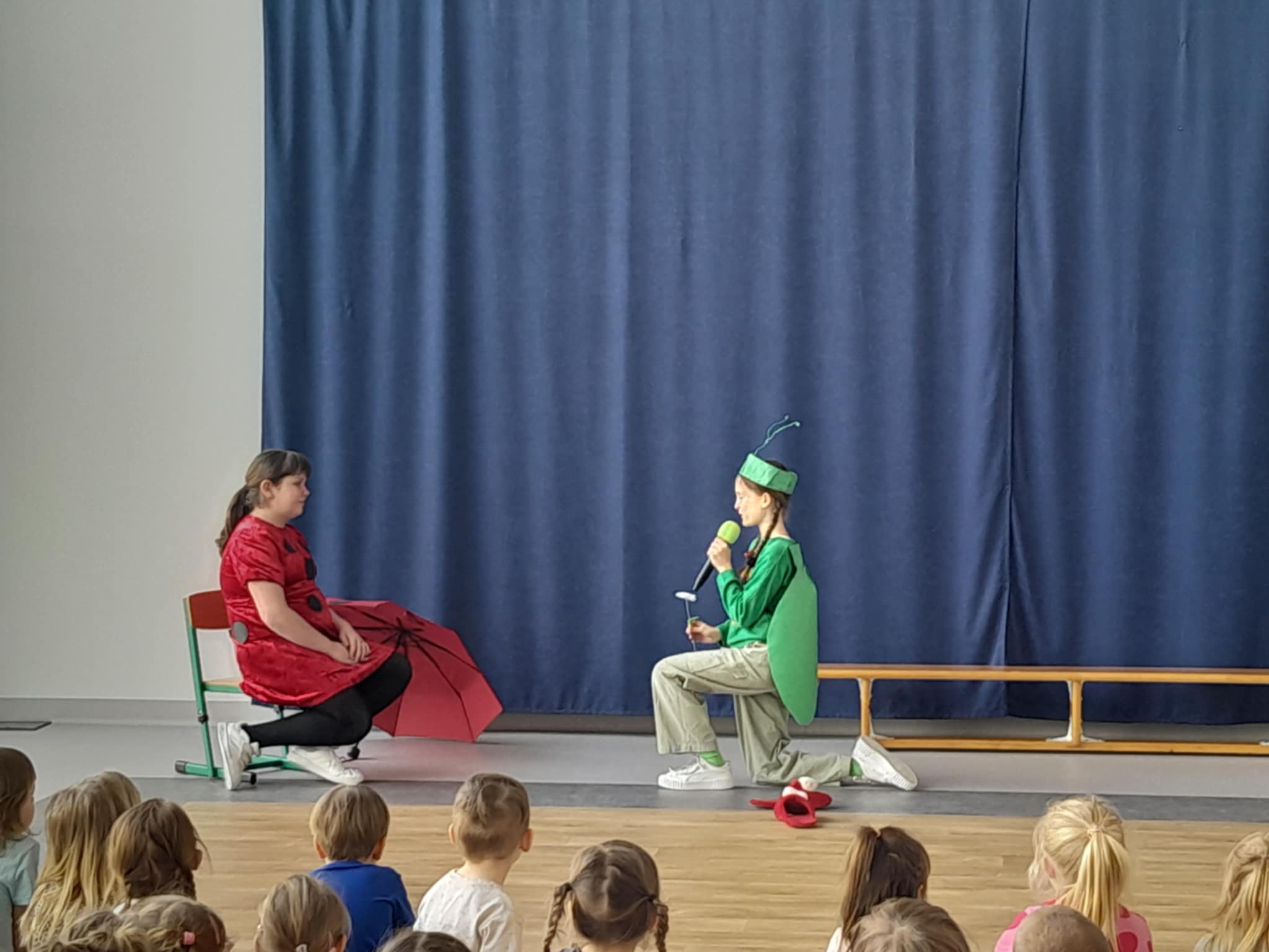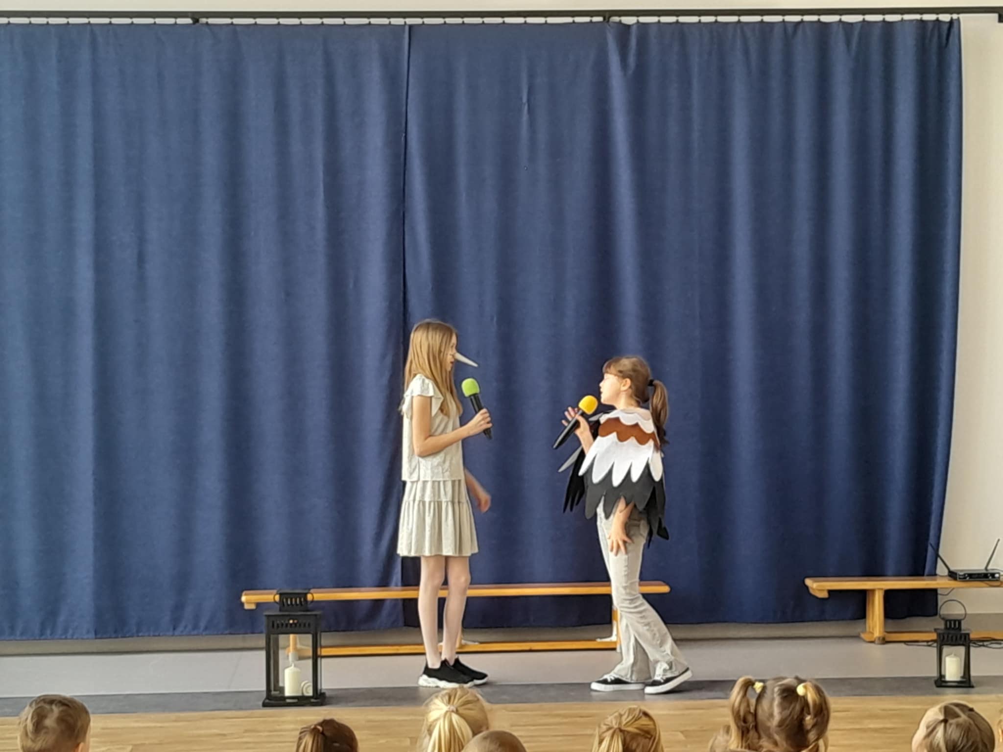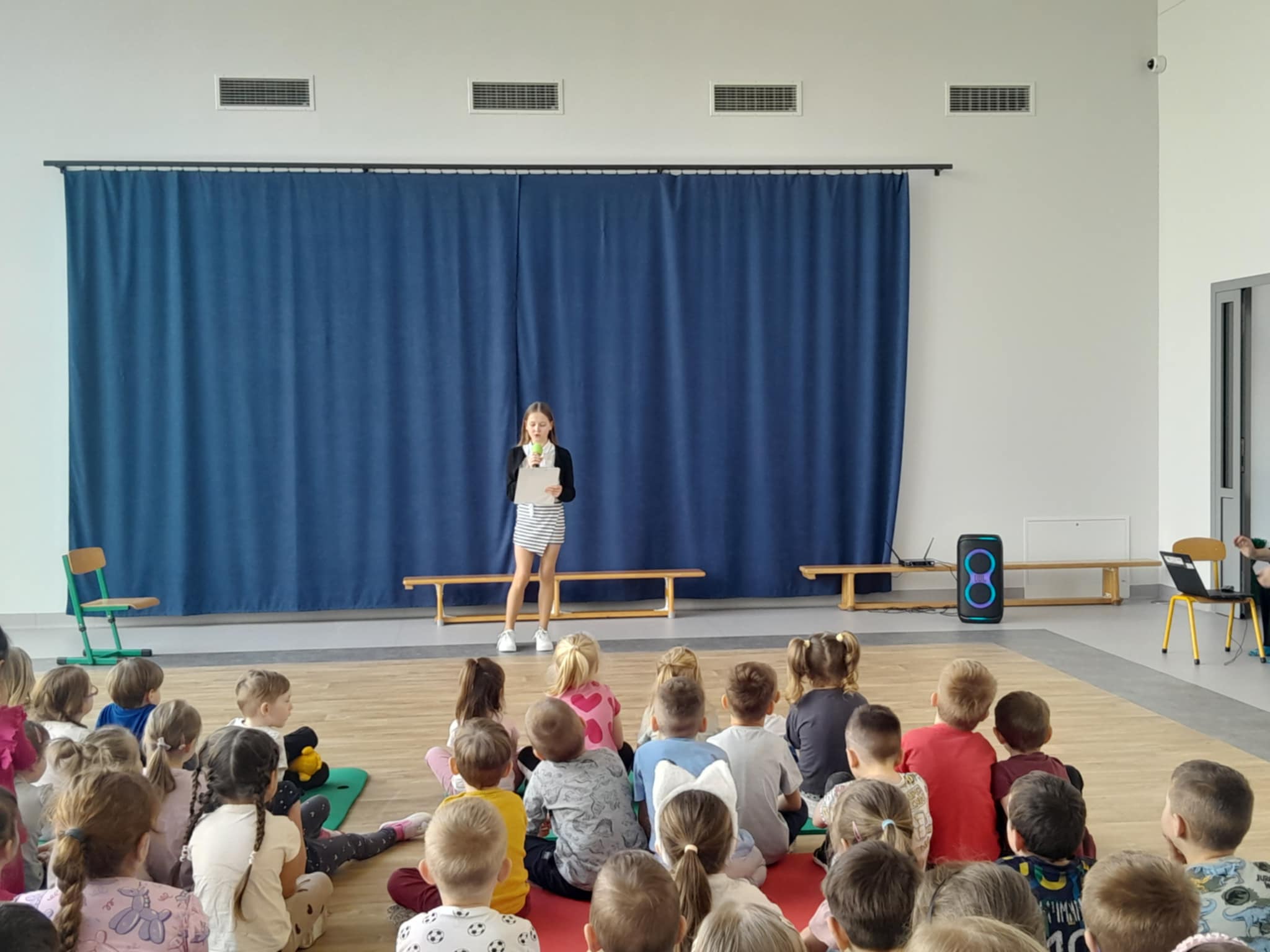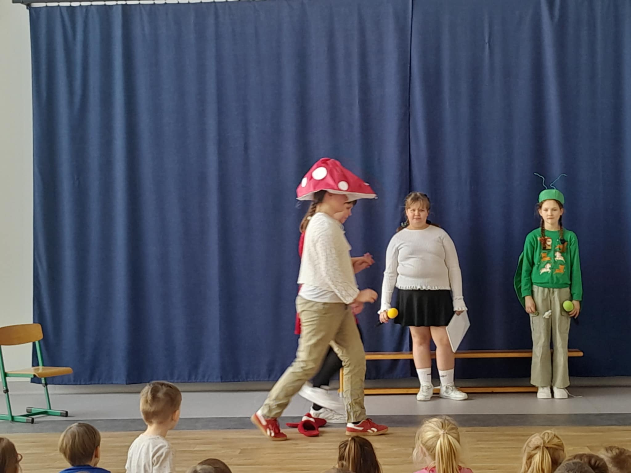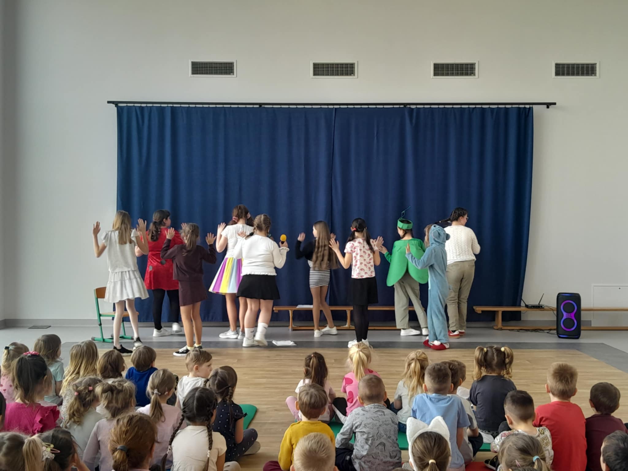 27 marca przypada Międzynarodowy Dzień Teatru. Teatr jest odpowiedni dla każdego, niezależnie od wieku. Oglądane spektakle kształtują u widza wyobraźnię, rozwijają osobowość, uczą wrażliwości. W związku z obchodami tego święta w naszej szkole uczennice klasy IV a i IV b wystawiły w Przedszkolu w Lelowie spektakl pt. „Wiersze, które znamy”. W przedstawieniu dzieci przypomniały znane i lubiane utwory Jana Brzechwy. Publiczność nagrodziła aktorów wielkimi brawami. Spektakl wszystkim bardzo się podobał.