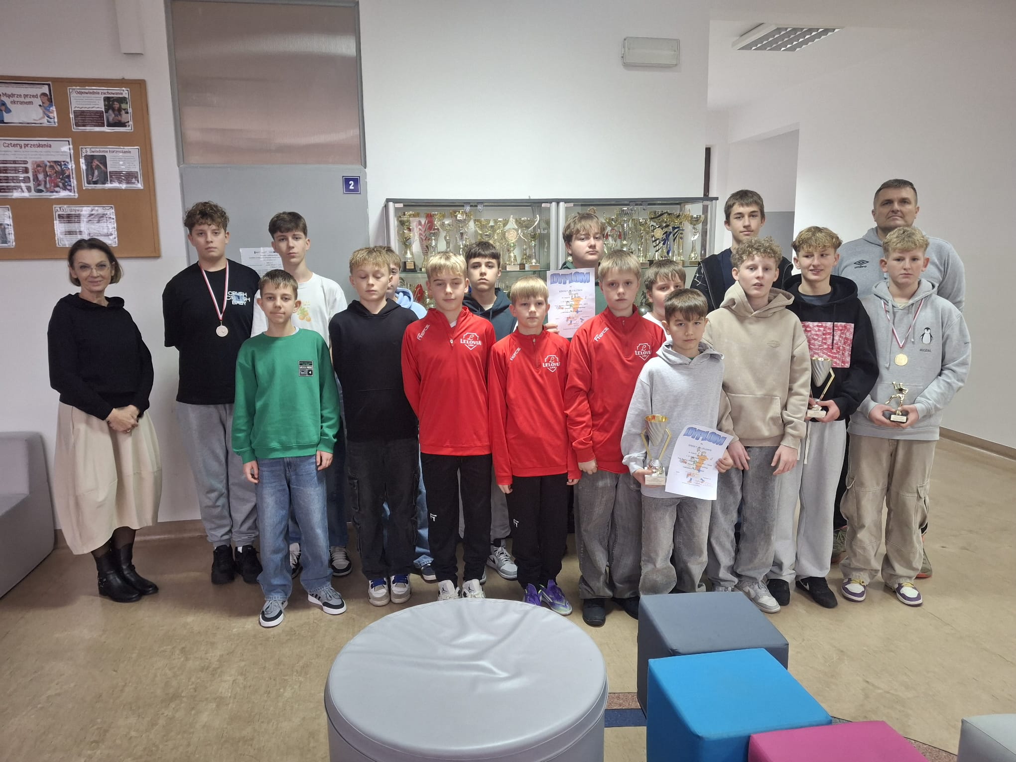 1 grudnia dwie drużyny chłopców reprezentujące ZSP w Lelowie wzięły udział w Turnieju Piłki Ręcznej o Puchar Starosty Częstochowskiego. Turniej rozegrano w Kamienicy Polskiej, a oprócz naszej szkoły oraz gospodarzy w imprezie grały również zespoły ze Starczy. Nasza starsza drużyna w emocjonującym meczu z gospodarzami przegrała jedną bramką i ostatecznie zajęła drugie miejsce. Natomiast młodsi, debiutujący w tej imprezie, wygrali obydwa spotkania i zasłużenie zostali najlepszą drużyną w swojej kategorii.