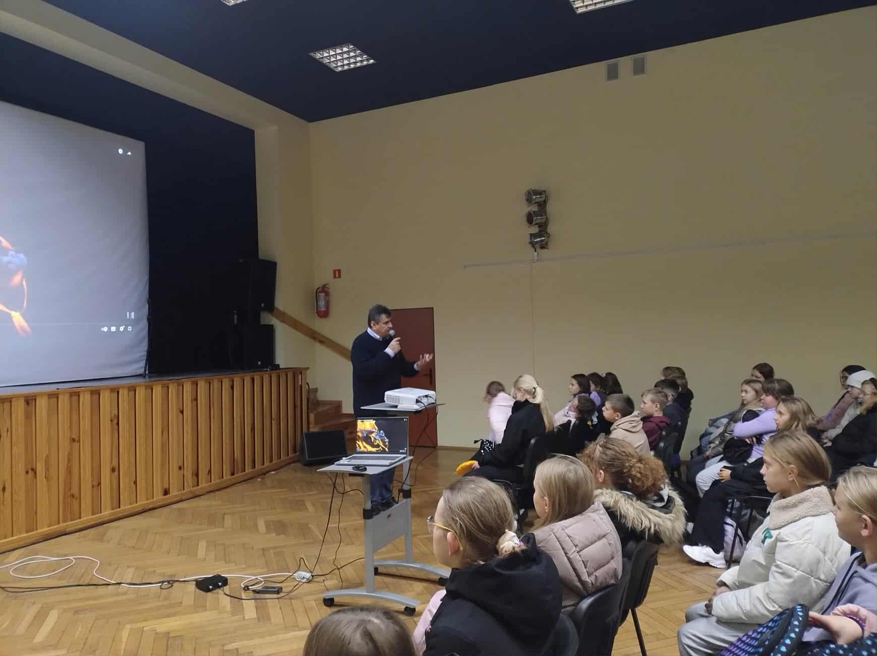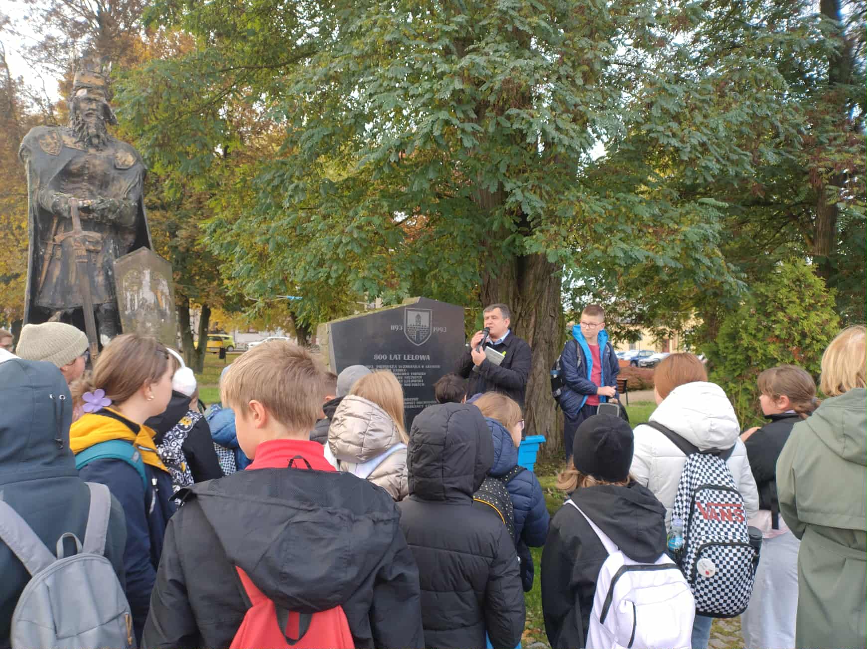 Wędrówkę po Lelowie prowadził pan Mirosław Skrzypczyk – prezes LTH-K im. W. Zwierkowskiego w Lelowie.