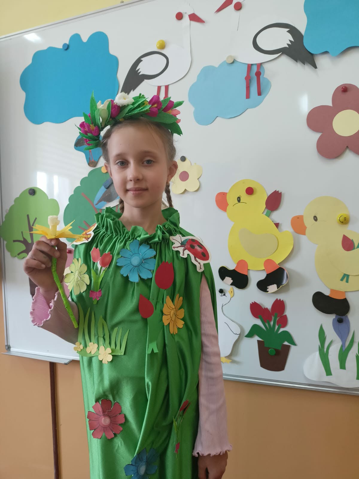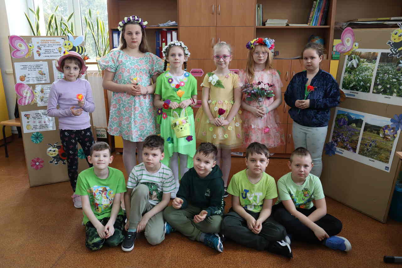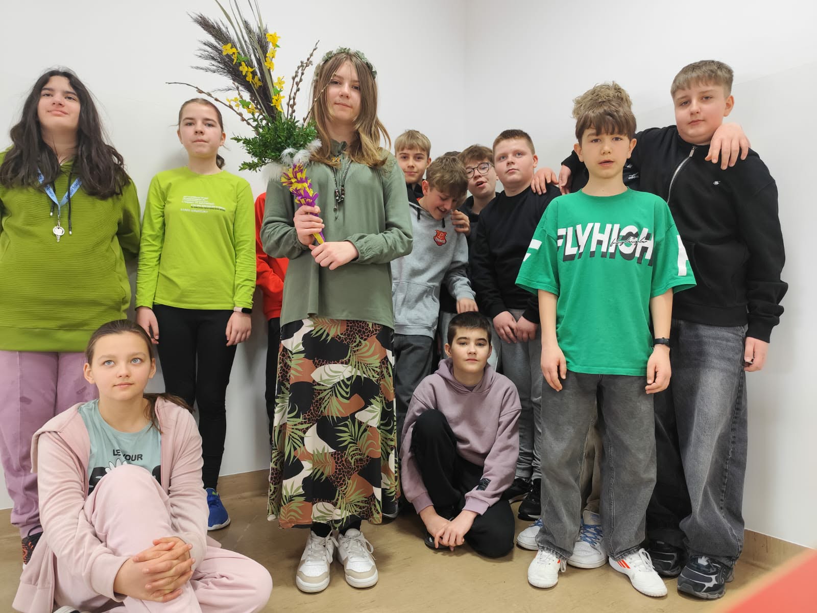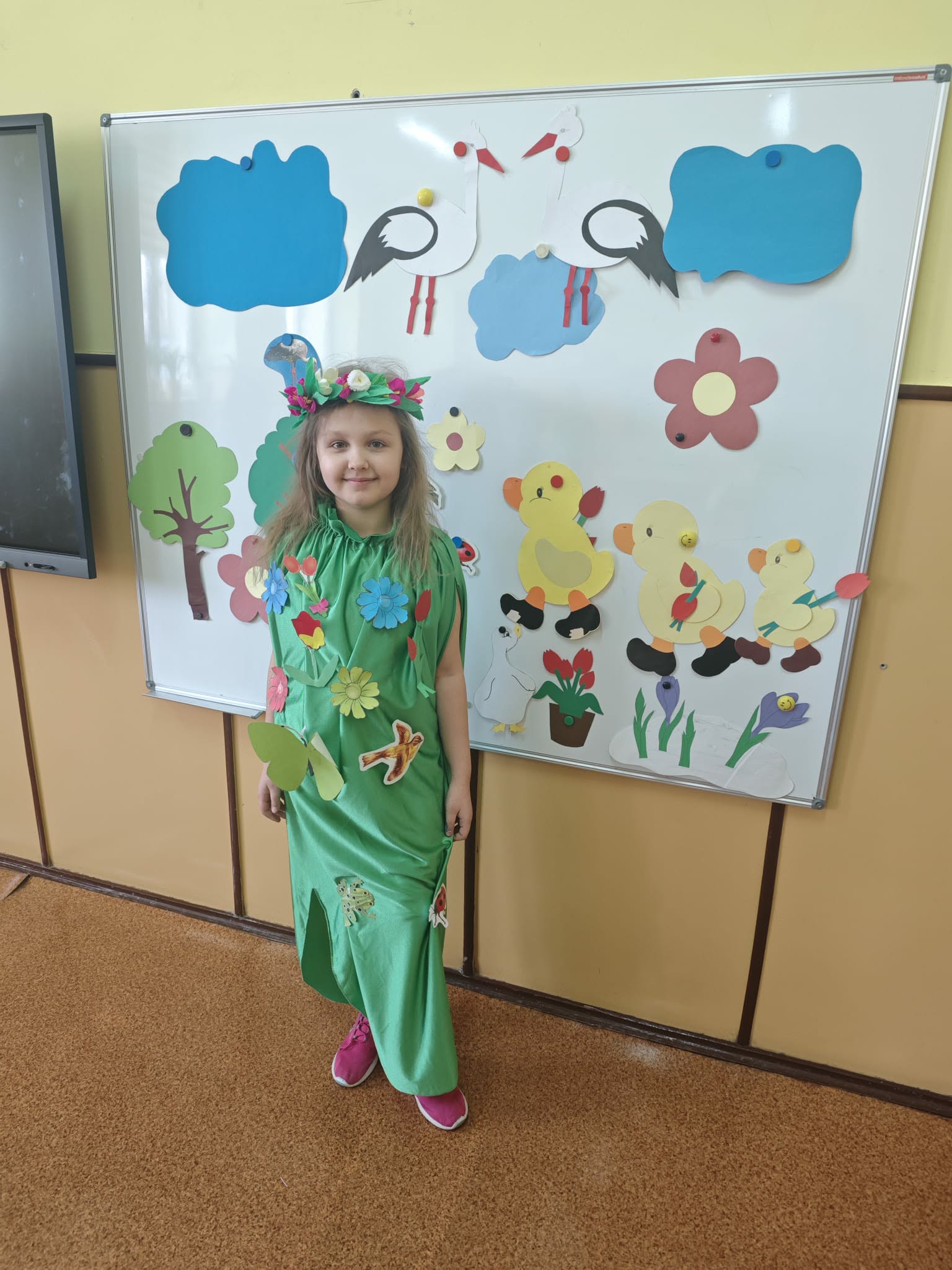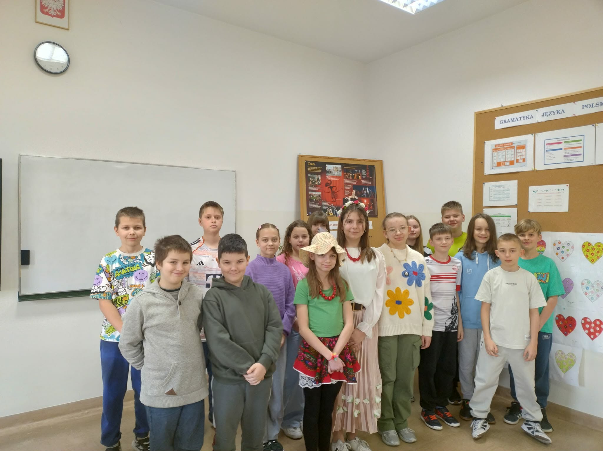 Uczniowie przyszli ubrani na zielono, a dzień wypełniły aktywności związane z powitaniem wiosny, m.in. przygotowanie stroju Pani Wiosny.