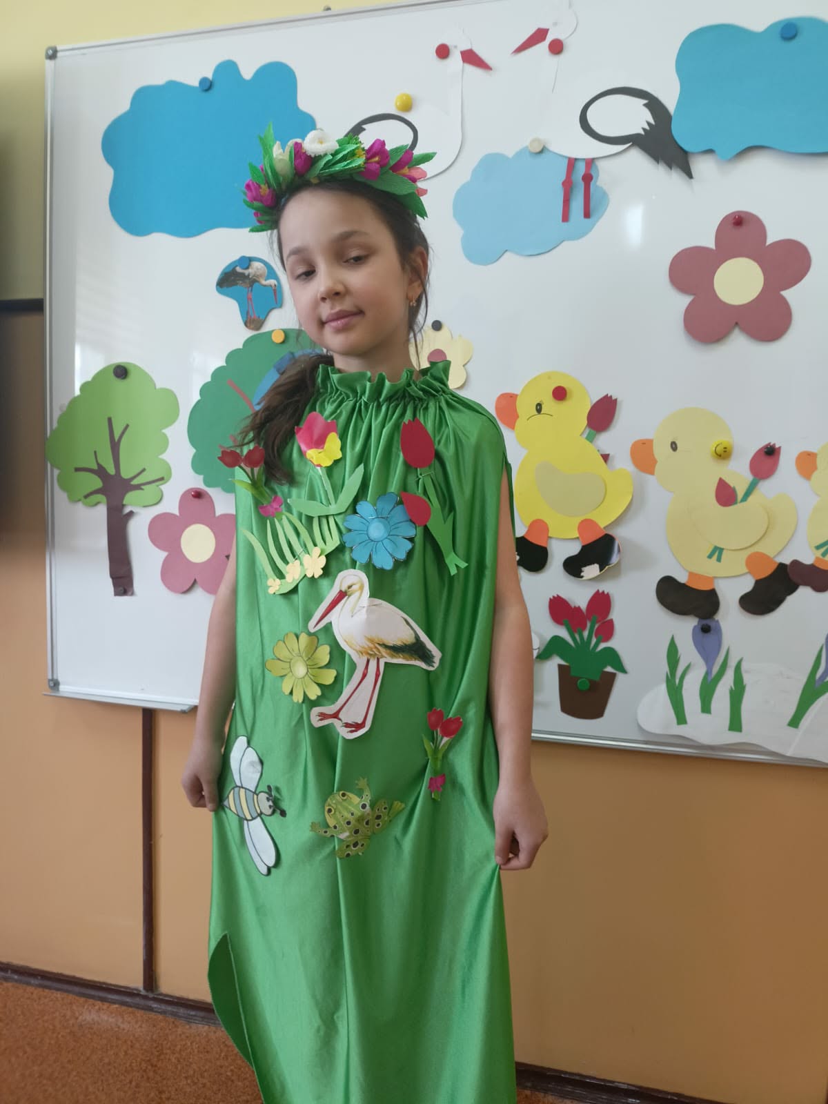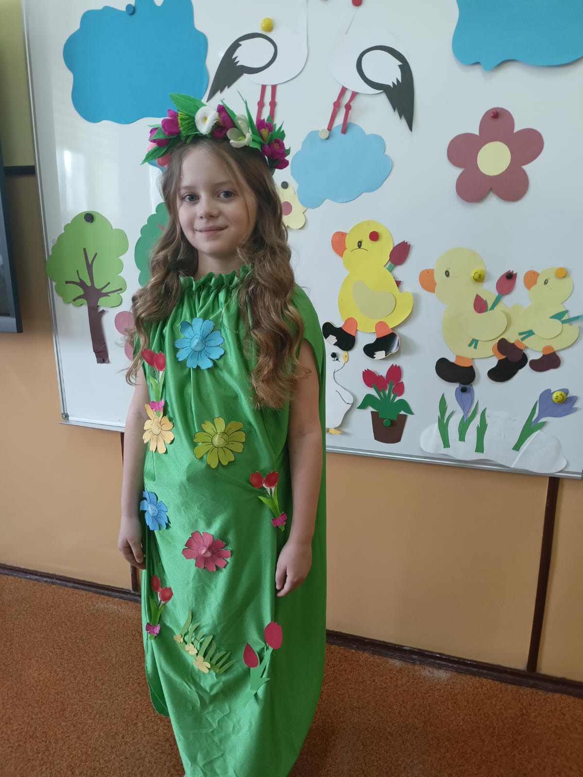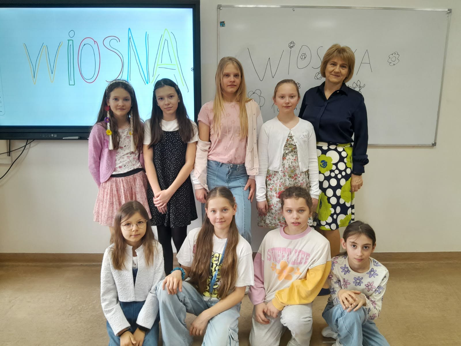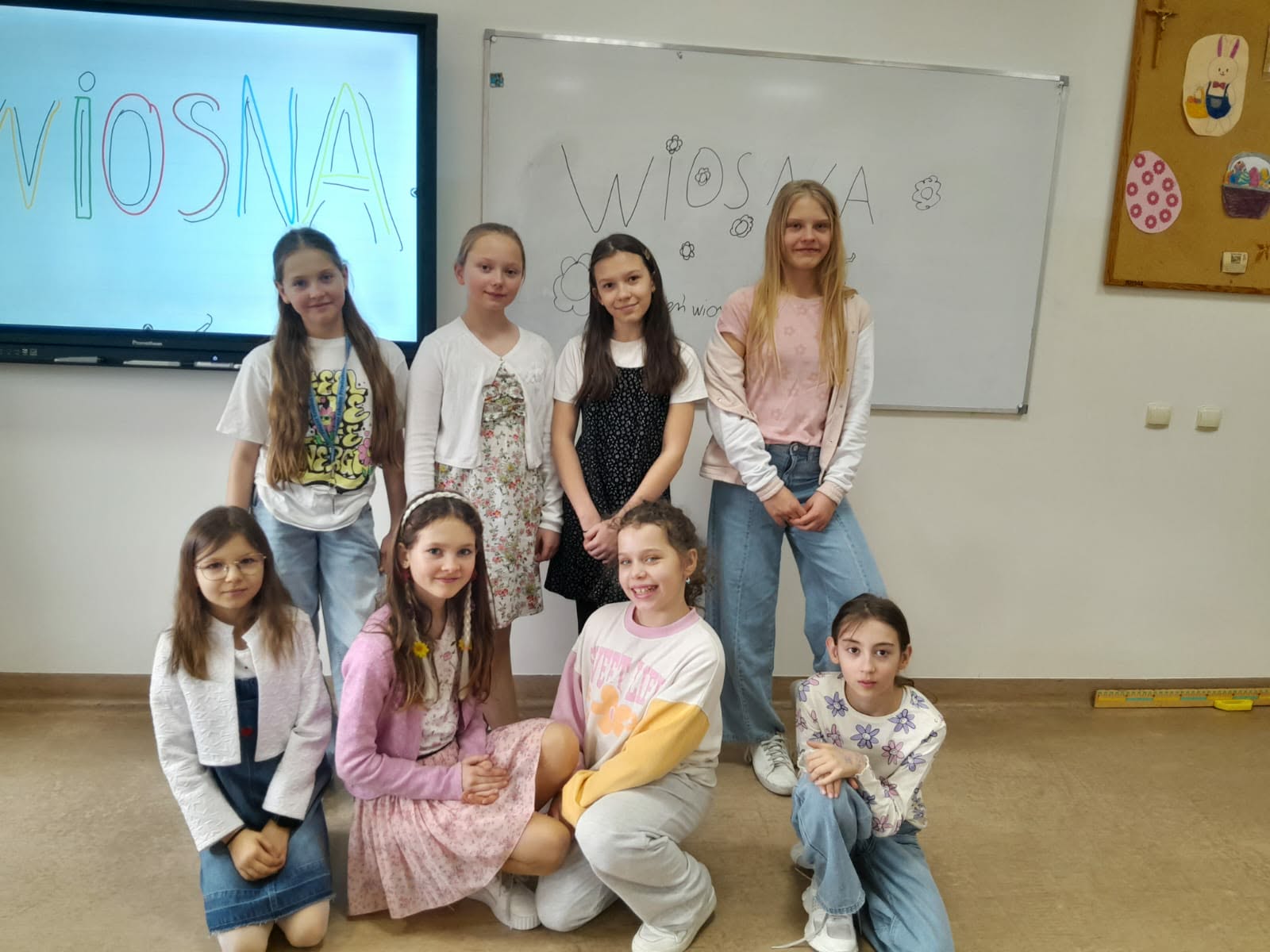 Uczniowie przyszli ubrani na zielono, a dzień wypełniły aktywności związane z powitaniem wiosny, m.in. przygotowanie stroju Pani Wiosny.