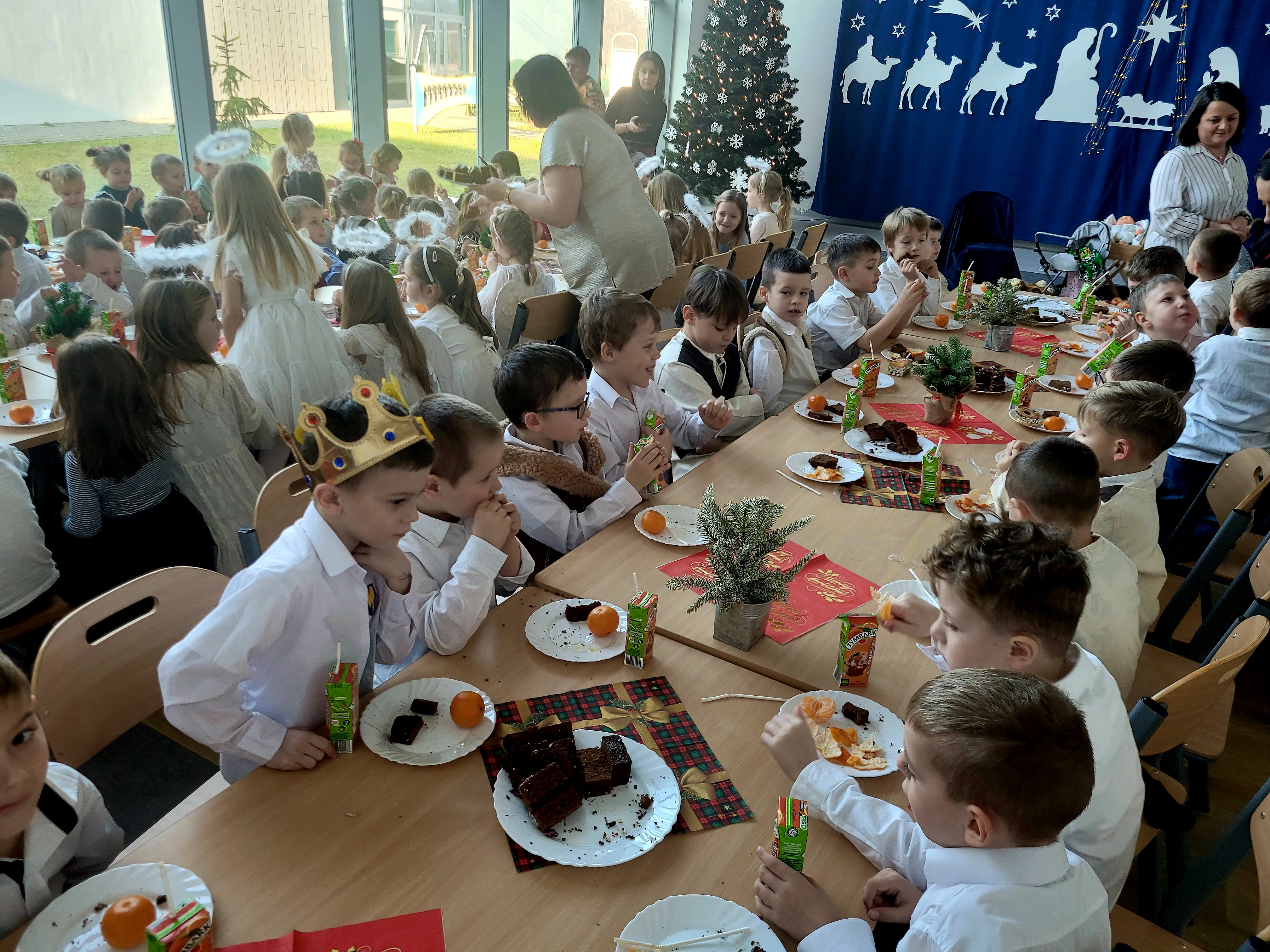 19 grudnia w naszym przedszkolu panowała wyjątkowa, świąteczna atmosfera. Tego dnia odbyły się Jasełka w wykonaniu 6-latków z grup Motylków i Biedronek, które w piękny i wzruszający sposób wprowadziły wszystkich w bożonarodzeniowy nastrój. Mali artyści z ogromnym zaangażowaniem wcielili się w swoje role, a ich występ został nagrodzony gromkimi brawami.