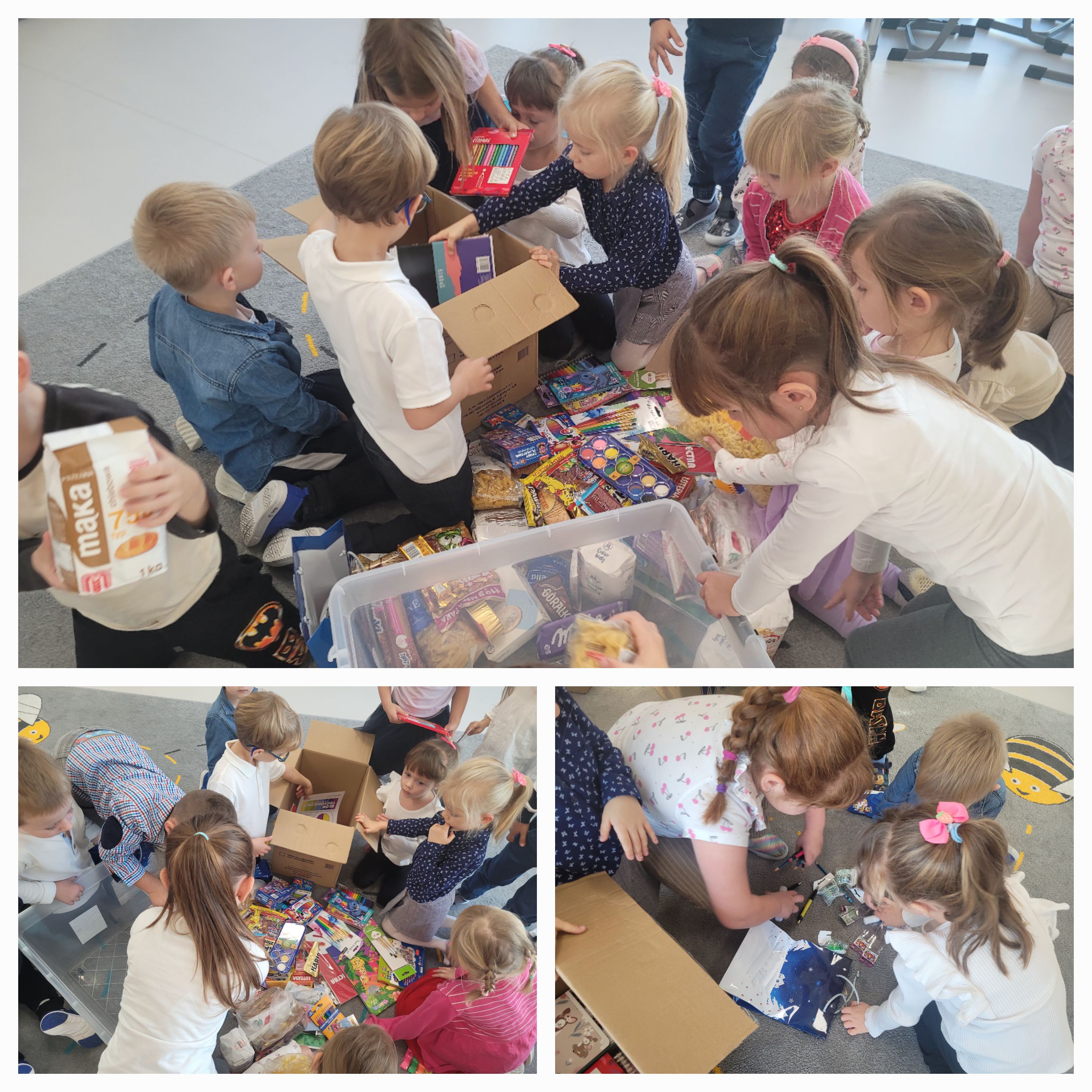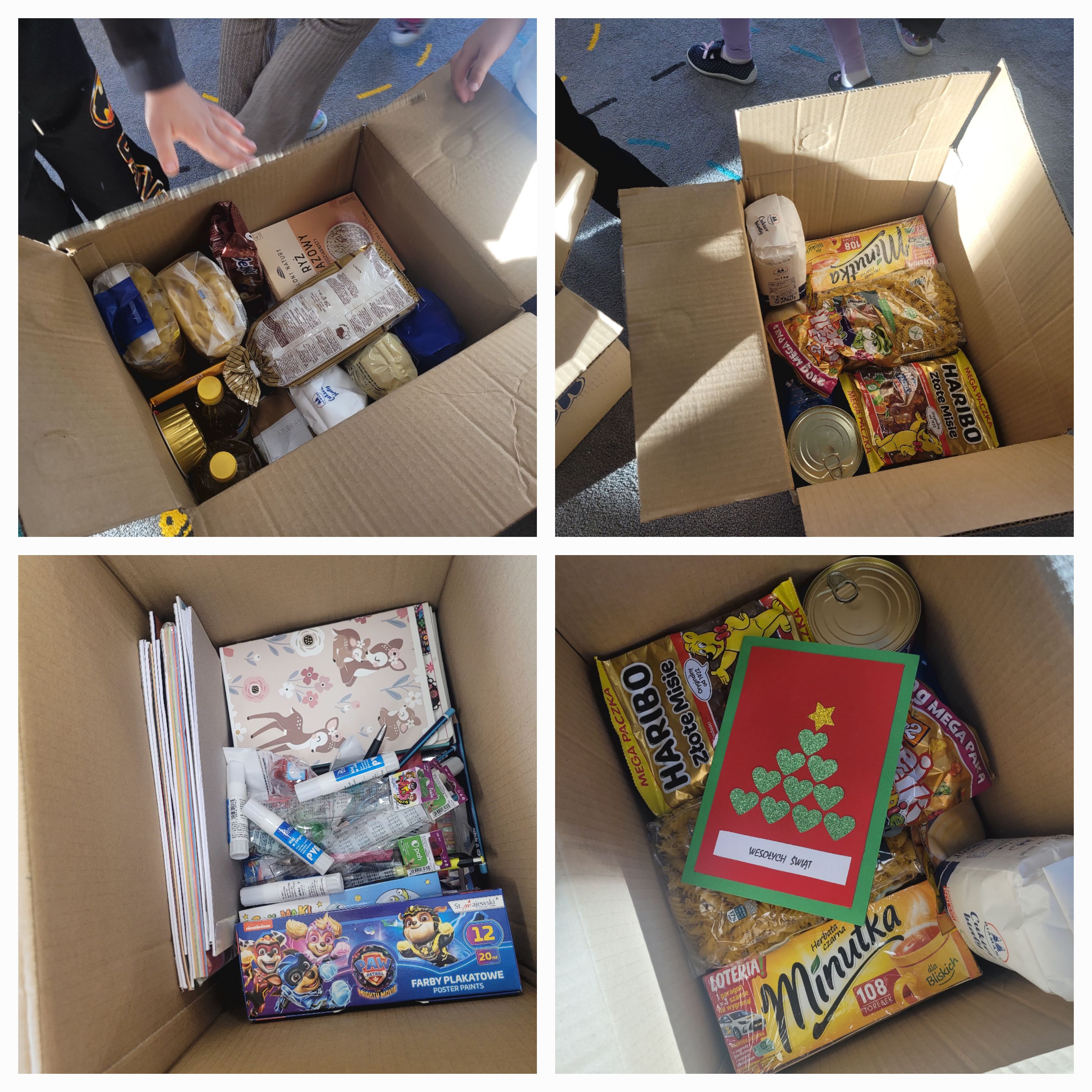 Dzieci wraz z rodzicami i wychowawcami z zaangażowaniem przygotowały paczki świąteczne pełne słodyczy, artykułów szkolnych i produktów spożywczych?. Każda z nich powstała z myślą o radości dzieci i rodzin, do których trafią w okresie Bożego Narodzenia.