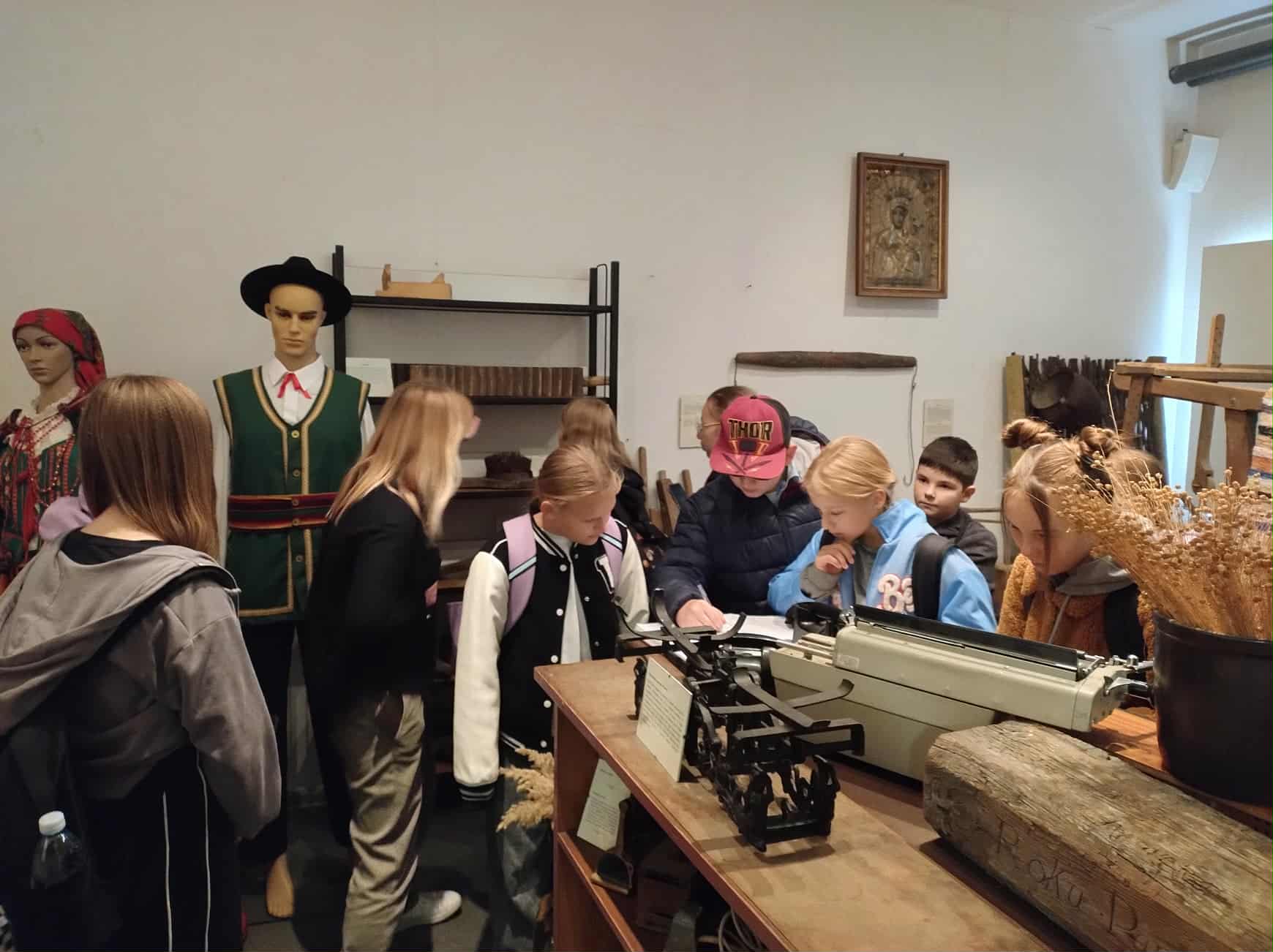 30 września 2025 r. odwiedziliśmy naszą Izbę Tradycji, która mieści się w Gminnej Bibliotece Publicznej w Lelowie. Uczniowie poznali najstarsze eksponaty zgromadzone przez pracowników biblioteki i wyeksponowane dla mieszkańców oraz turystów Lelowa. Zapoznali się również z dwoma postaciami zasłużonymi dla gminy Lelów – Jackiem Laberschekiem (doktorem Uniwersytetu Jagiellońskiego) oraz ks. doktorem Zygmuntem Zaborskim. Ich prywatne księgozbiory znajdują się właśnie w naszej GBP.